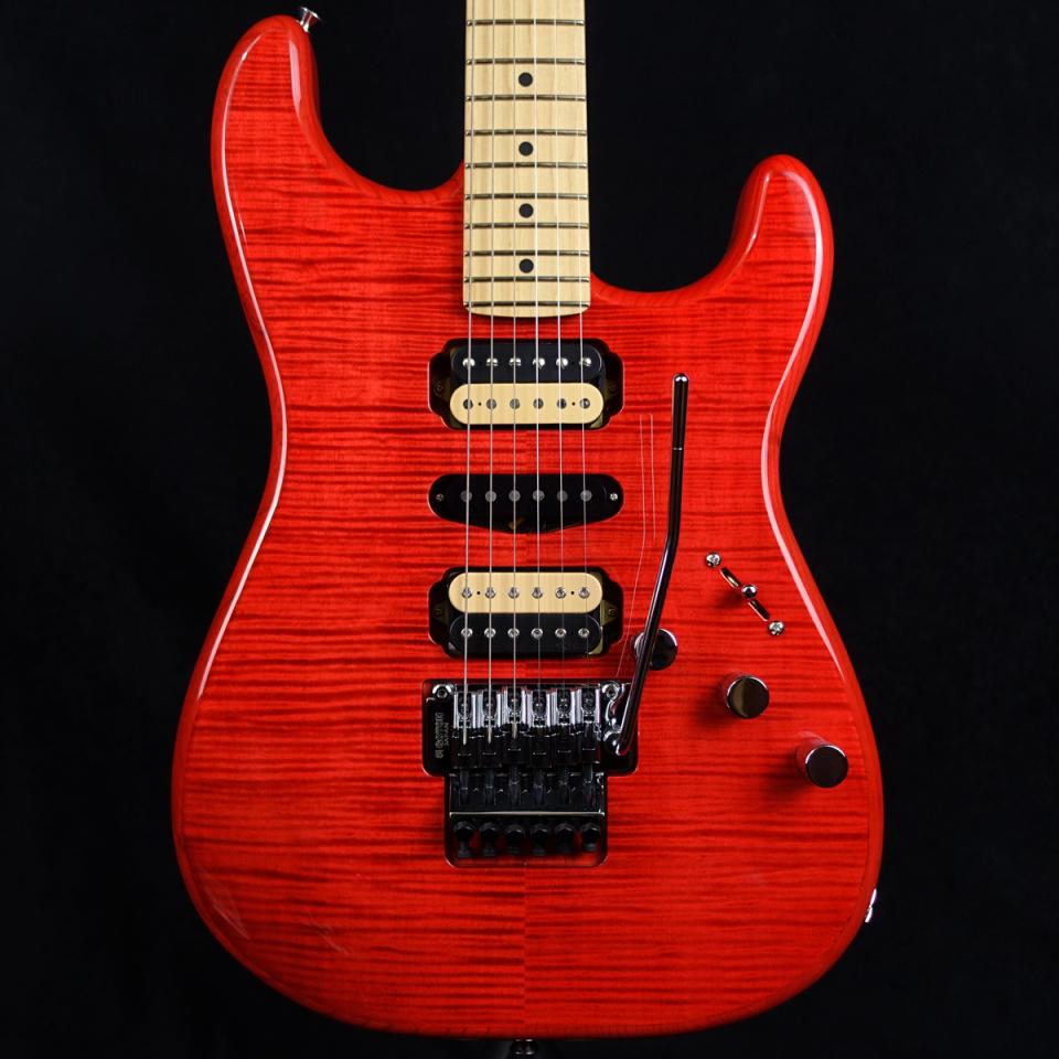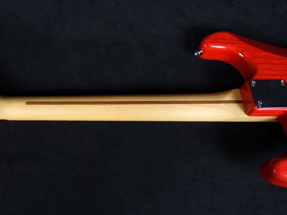 アッシュバック、フレイムメイプルトップにメイプルネック、メイプル指板を採用したウッドマテリアル。