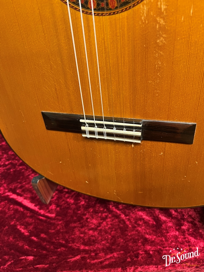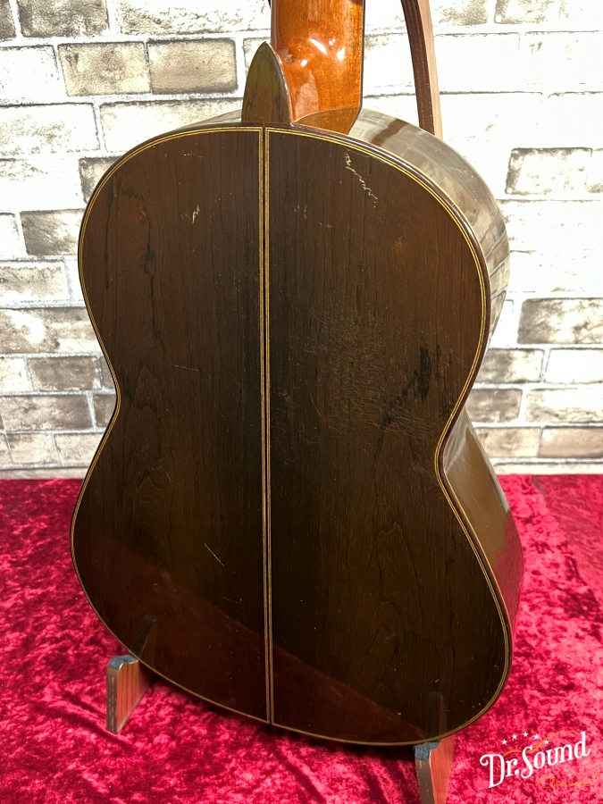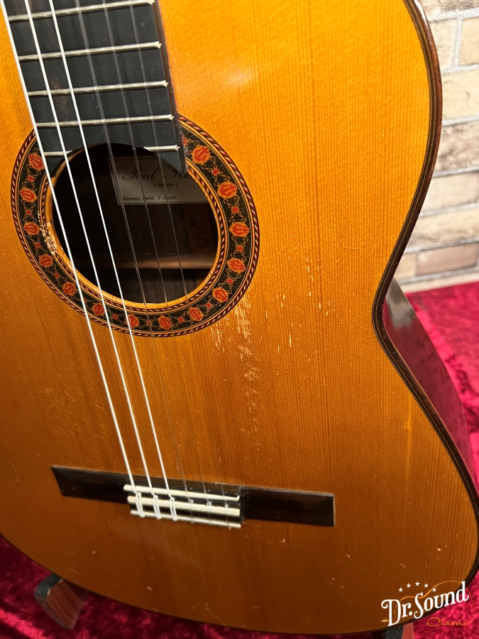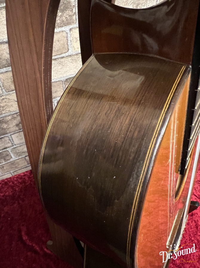 この1978年製は、ルビオ工房から独立前後の作品、表面板や裏板等の各所に演奏キズ、打痕など多数あり、これまでにしっかり弾き込まれてきたことが窺われる1本です。横板には塗装の痛みも見受けられます。当店に入荷前に国内ギター製作家の方に指板調整、フレット調整、サドルスロット調整等の処置、及び全体チェックをして頂いており、使用にあたっての問題はございません。