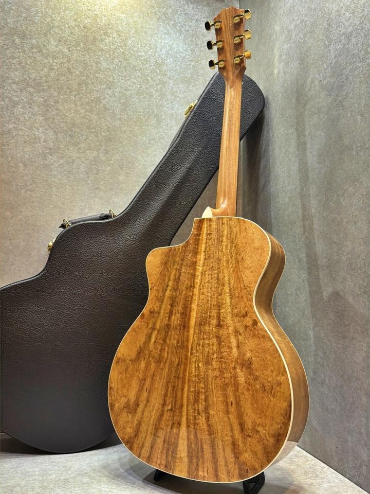 Taylorの中でも特に人気の高いグランド・オーディトリアム(GA)ボディを採用し、抱えやすさと豊かな音量、そしてストロークからフィンガースタイルまで幅広く対応する優れたバランスを実現しています。