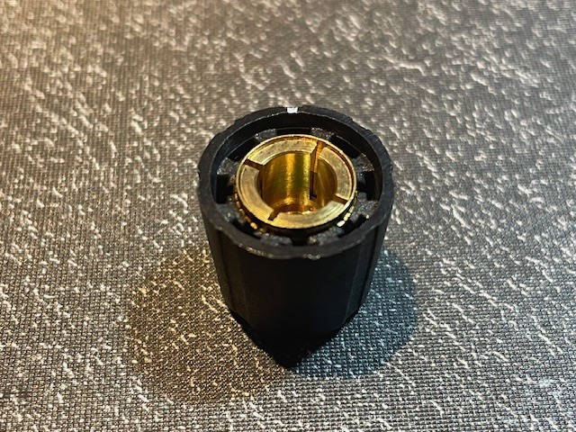 この交換用ノブキャップは、上部に直径12mm、内部に10.5mmの大きさを持ち、白いインジケーターラインが付いています。