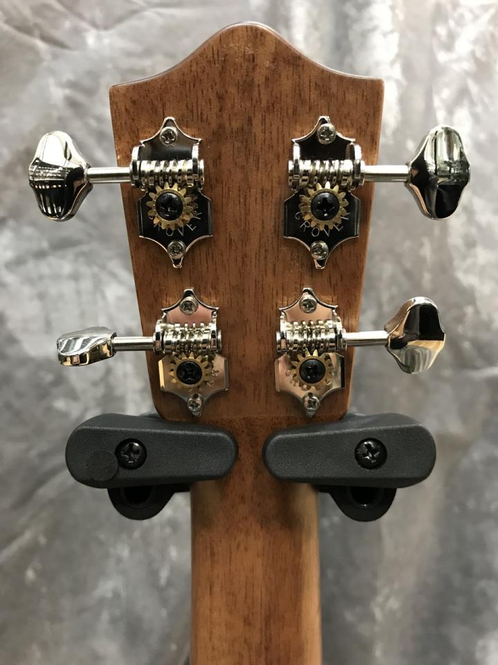 ネックは握りやすいシェイプで、ナット幅約37.4mmのやや広めの設計となっており、演奏時のフィンガリングもしやすい仕様。さらにGrover製オープンバックペグを採用し、安定したチューニングと軽快な操作性を実現しています。