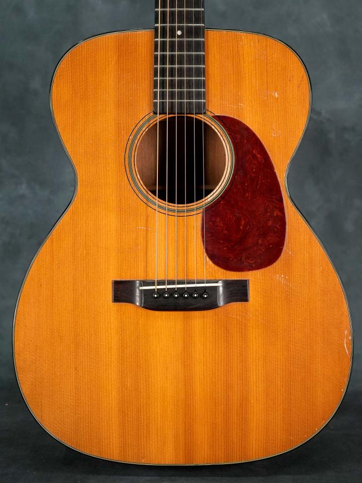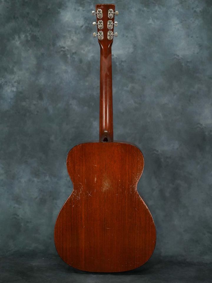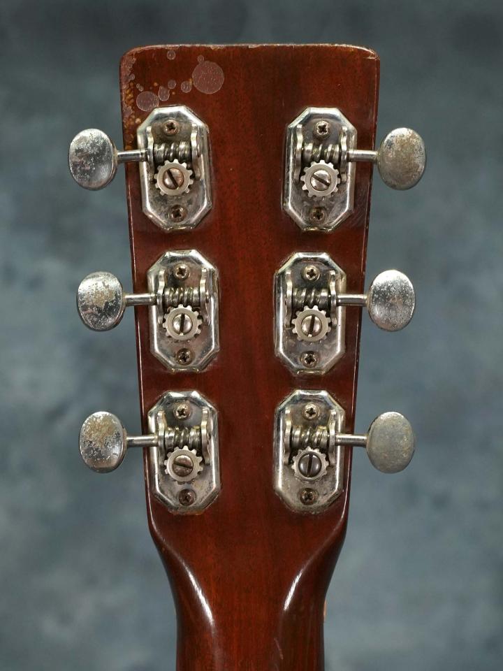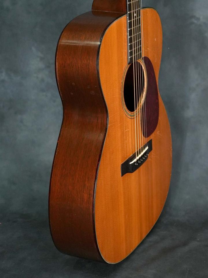 ロゴの掛けや経年相応の使用感はあるものの、製造から75年以上経過している事を考えればコンディションは比較的良好。とは言え一見して貫禄を感じるルックスに、マホガニーならではの明るさとレスポンスの良さ、余計な倍音の落ちた太く大きな鳴りが心地良く、演奏性良好でしっかり枯れた000-18をお探しの方にオススメの一本です。