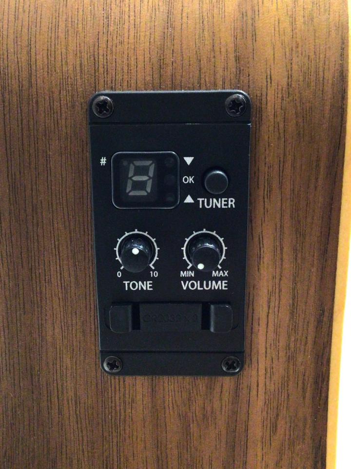 トップ材にスプルース単板、サイド・バックにウォルナットを使用。ピックアップが付いているため、ライブや発表会で音量を増幅しての演奏も可能です。