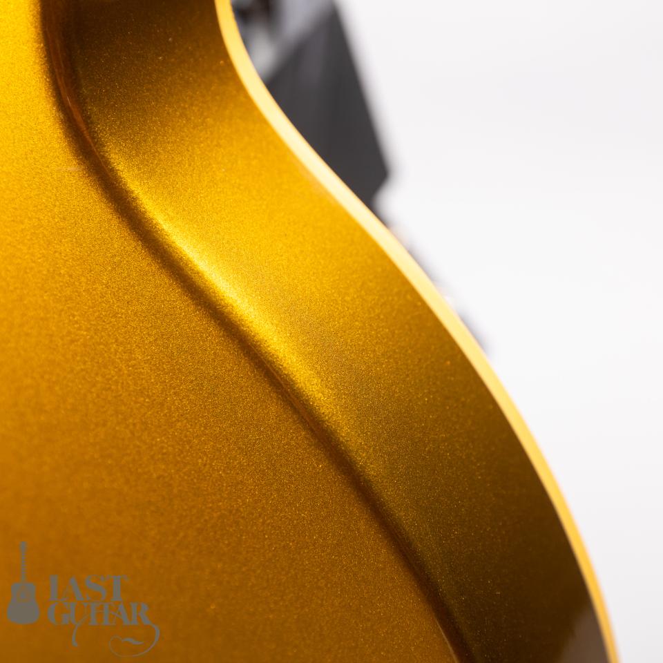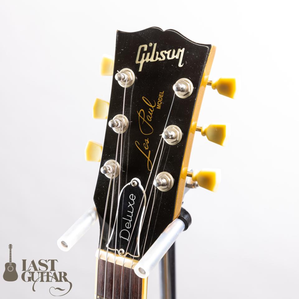 深みのある渋いゴールドカラー、素晴らしいサウンドで、お勧めです。近年、レス・ポール・デラックスは生産数も少なくレアなモデルとなっておりますので、是非、この機会にいかがでしょうか。ケースは、掲載のギブソンのハードケースが付属いたします。