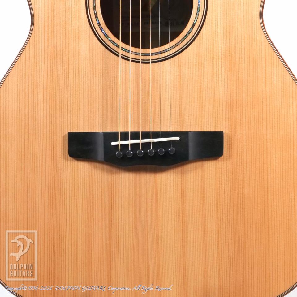 ギター界で杉と聞くと、ウェスタンレッドシダーをイメージしますが、シダーはヒノキ科ネズコ属。これは明治時代に国産杉の代替え材として輸入された時、見た目が杉に似ているため"米杉"と呼ばれたことに由来しており、本器に使われている国産地杉は学名:Cryptomeria japonicaの示す通り、スギ属の日本の固有種です。また、ラテン語のCryptomeriaには「隠された財宝」という意味があり、大変有難い木であります。