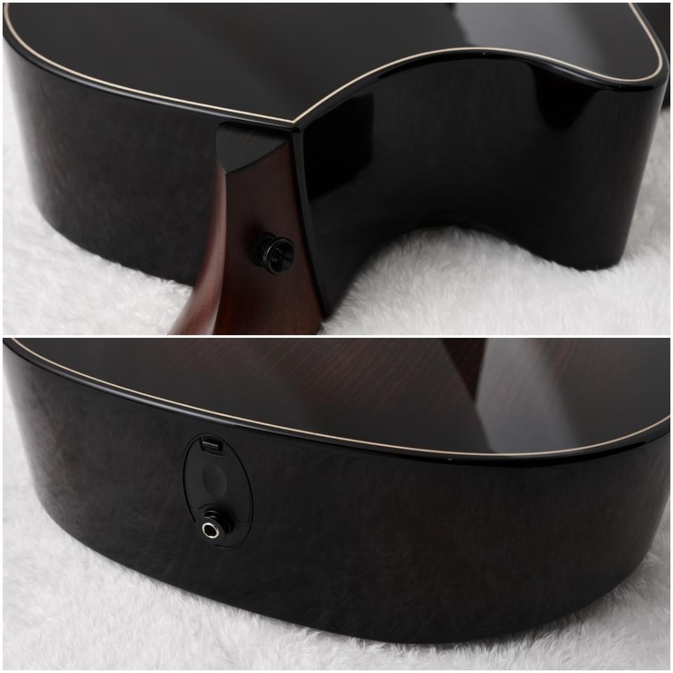 加えて本モデルはトップがスタイリッシュなブラック仕上げとなっており、ボディ全面が艶ありフルグロス、またサイドとバックはコナ・エッジバーストカラーによりハイエンドモデルらしい美しさと存在感を放っています。