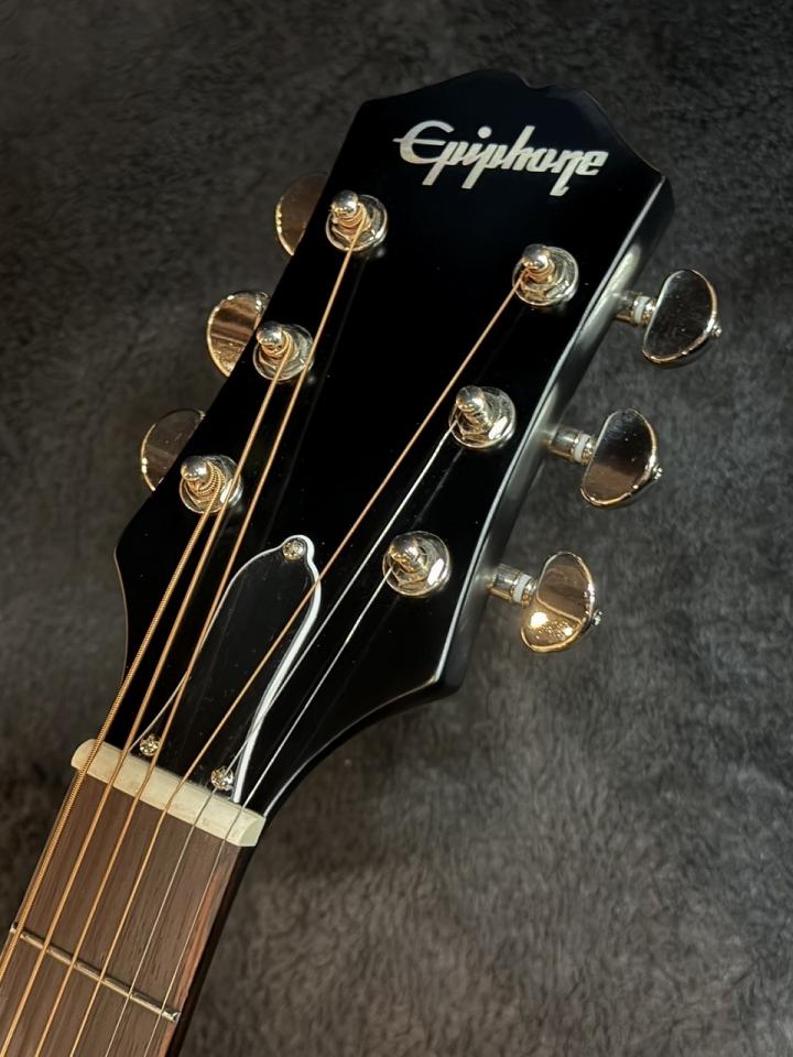 オール単板で構成される木材はGibson J-45同様スプルース×マホガニー。ワンピースマホガニーのネックにローズウッド指板。Epiphoneブランドとしての主張として幅広な1960年代のカラマズーシェイプのヘッドを採用。新たに設計されたピックガードはエポキシ・スタイルを採用し、伝統的なティアドロップ・シェイプとトータスシェル・カラーを備えています。