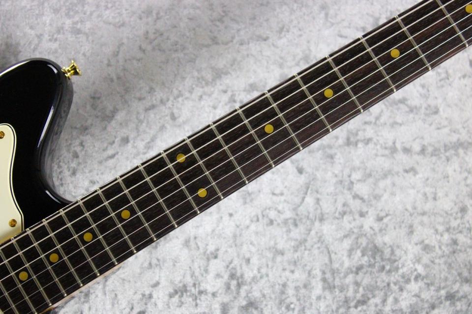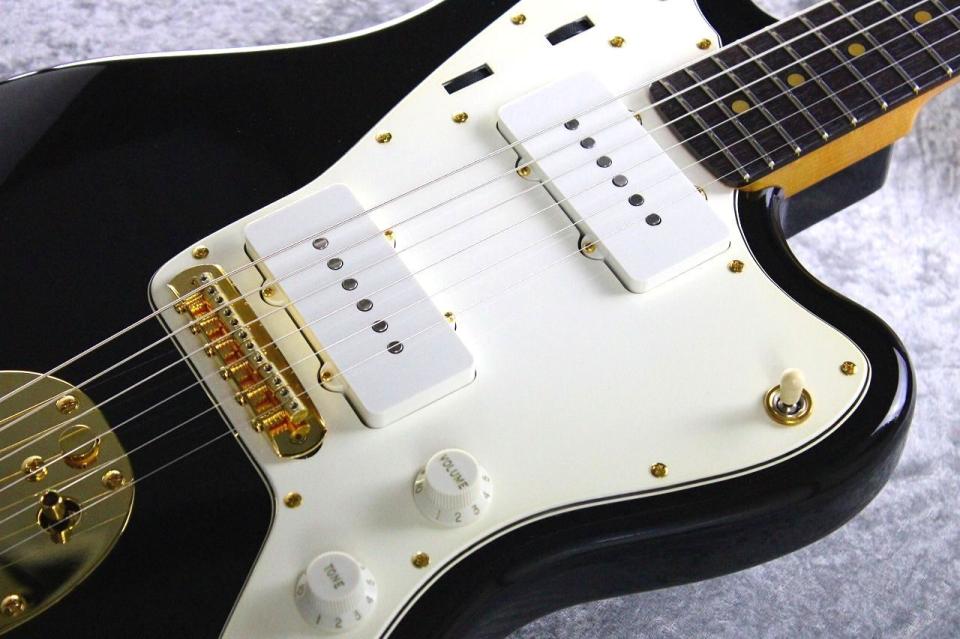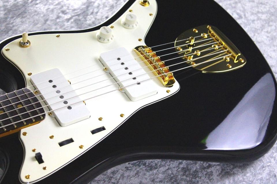 今回は当ブランドのBlack Beautyカラーとはまた異なるF社同様に下地にホワイトを重ねた伝統的なブラックカラーに、同色でのマッチングヘッド、ゴールドパーツを採用した、ビンテージムック本などに見られる60年代のカスタムスペックを意識したルックスを目指しました。