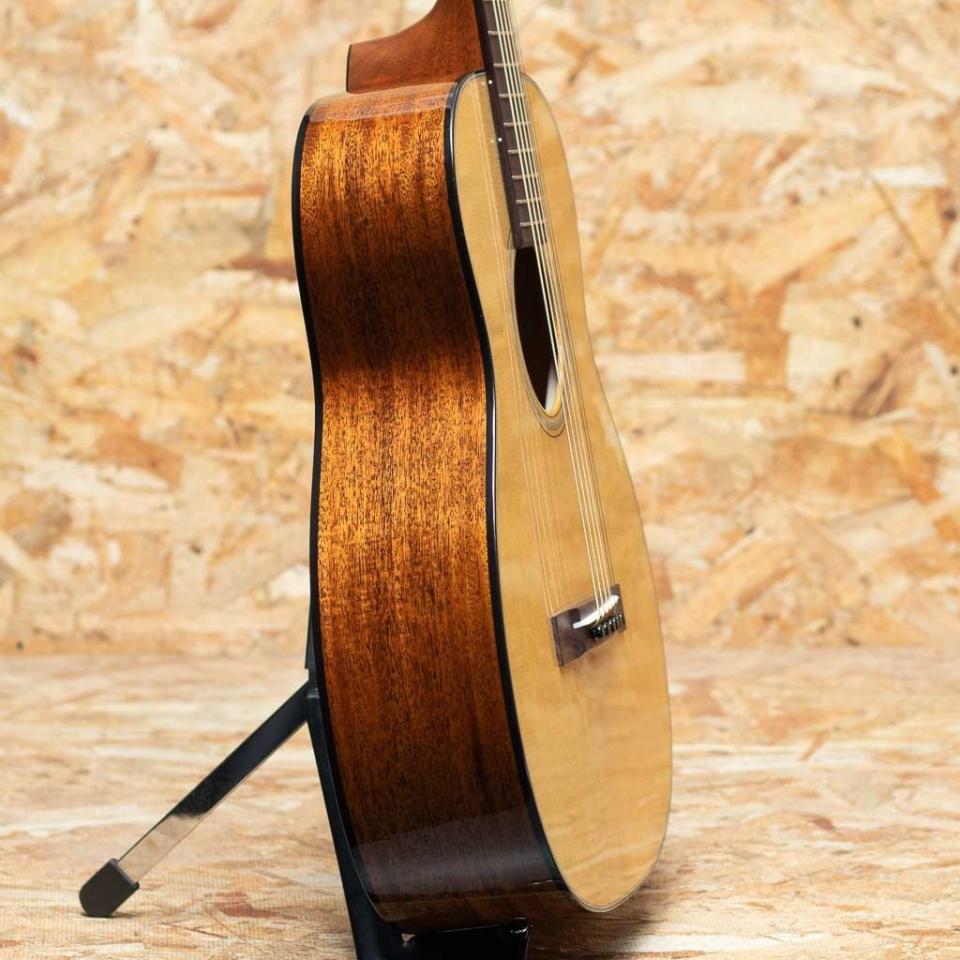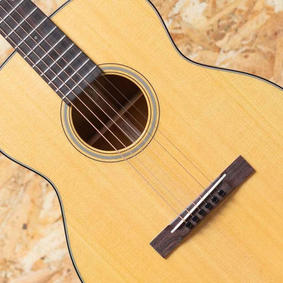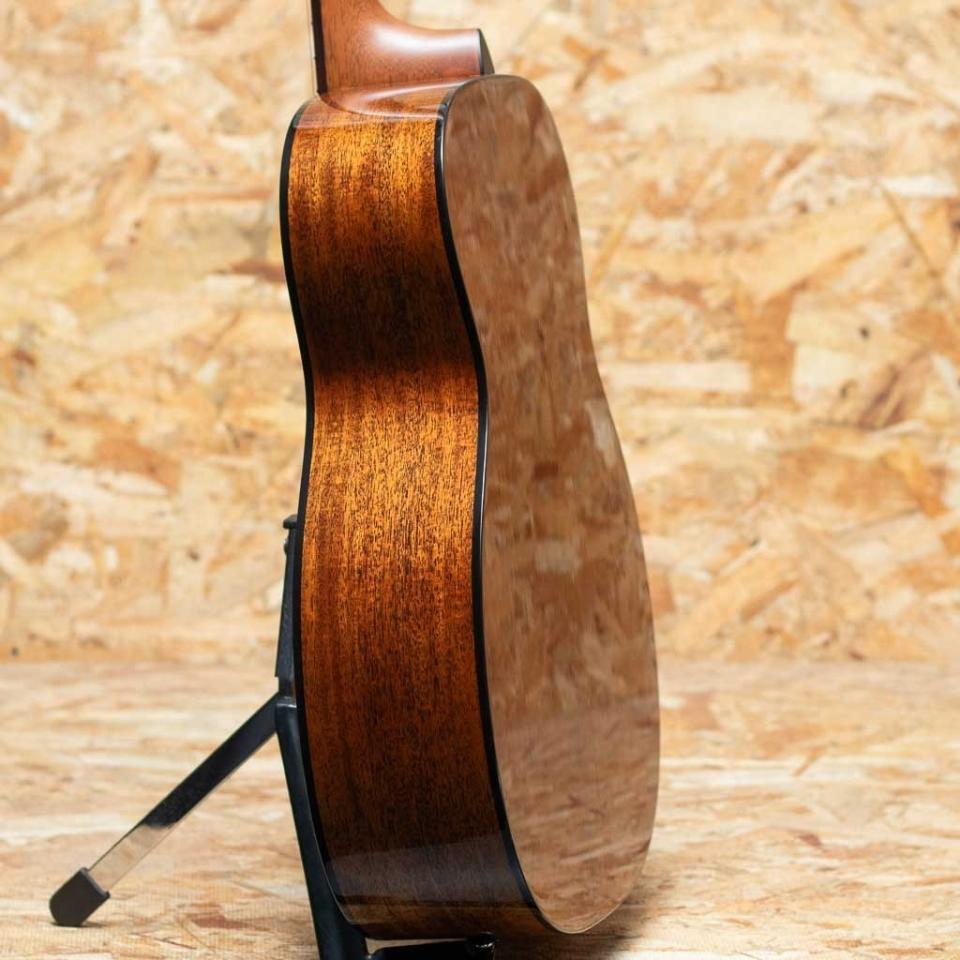 世界に一つだけのカスタムモデル!マーティンカスタムショップ製ギターとはマーティンファクトリー内のほんの一郭にて少数精鋭の熟練職人により手掛けられる超一級ギターのこと。オーセンティックシリーズや、特注品、一点モノのギターなどの生産がそれに当たります。本器はいわゆる4弦テナーギターを6弦仕様にカスマイズした個性的なカスタムモデル。シングルオーサイズとミニギターの中間ほどのボディサイズで、パワフルさを保ちながらも抜群の演奏性を発揮します。432mmスケールに、スタンダードテーパーのモディファイドローオーバルシェイプを採用した43mm幅ネック。通常サイズのギターから持ち替えてもネック周りの違和感は少なく、すぐに手に馴染んでくれるでしょう。シトカスプルーストップ、マホガニーサイド&バック、ローズウッド指板&ブリッジと、主なマテリアルは王道18スタイル。ノンスキャロップドXブレーシングを採用しており、重厚さ、堅牢さも備えています。現在レギュラーモデルに同サイズモデルはなく、カスタム品でしか手に入れることができない特別な1本。小ぶりなサイズで本格的なモデルをお探しの方におすすめです。オリジナルハードケース付き。