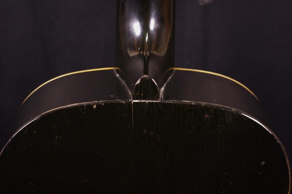 1935年から1943年の戦前に生産された貴重なギブソンアーチトップL-30が入荷しました!!トップはスプルース、サイドバックにはメイプルを採用したスモールサイズのアーチトップで手軽にお楽しみいただけます!初期の1935年から1936年にかけて生産された個体でブラックフィニッシュが特徴になります!年代相応の打ち傷、ウェザーチェック、弾き傷がありますがとても雰囲気の良いヴィンテージギターですよ!ピックガードは交換されていますがペグ、ブリッジ、テールピースはオリジナルで残っています。ペグは3.4弦のつまみが少し曲がっていますがチューニングには支障ございまえん。ネックヒールへのストラップピンやピックアップなど特別な加工はございません。ナット幅は約44.5mm、やや太めのVネックになります。ネックのアングルも適正でトラスロッドの動作も問題なく余裕があります。フレット、ナットは交換済みで高さに余裕があります。弦高は12フレット6弦側で約2.8mm、1弦側で約1.6mmの高さでサドルを下げて合わせています。長年弾きこまれた個体で素晴らしく乾いた暖かな雰囲気の良いサウンドで完成されていますね!探していた方は是非この機会にお試しください!おすすめ!!チップボードケース付き