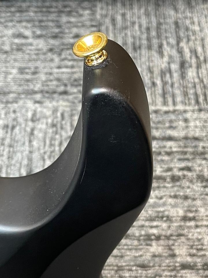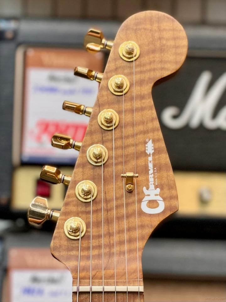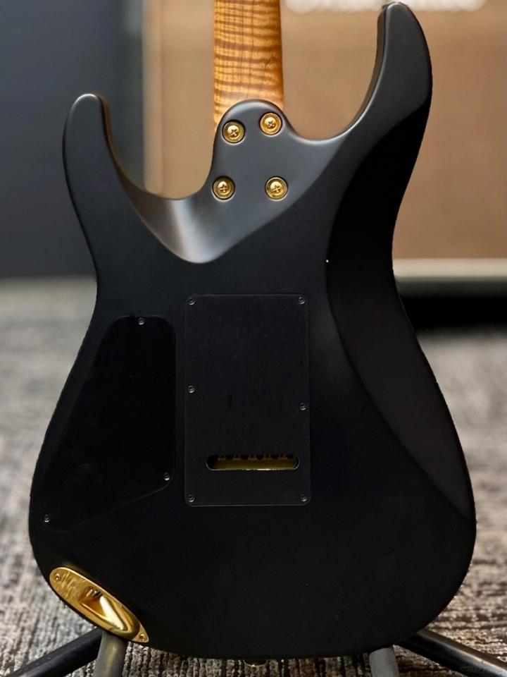 シンプルな艶消しのSatin Blackがゴールドパーツとキャラメライズド加工された木部の美しさを際立たせ、立体感のあるフレイムメイプルの杢目が高級感を感じさせてくれる品です。