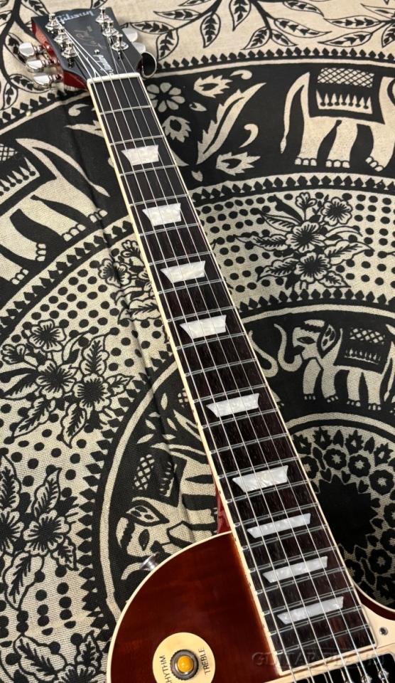 ボディがソリッドであることは勿論、60年代のレスポール・モデルにみられるハイフレットまで薄目に仕上げられたネック・シェイプを持ち、