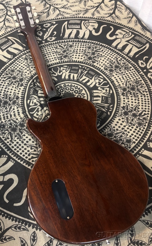 シンプルな1ピースマホガニーボディ、マホガニーネック、ローズ指板のウッドマテリアル。