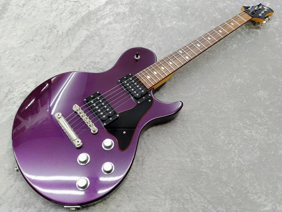 LP系シェイプのアルダーボディに25インチスケールのローズonメイプルネックをボルトオンジョイントした、フリーダムのオリジナルモデルRRS Bravery。紫系のSucchubusフィニッシュに、赤ラインのアクセントが効いたピックガードの組み合わせが妖艶で美しい2015年製のUSEDです。ピックアップはフリーダムオリジナルのHybrid Humbucker TypeⅠをセットで搭載。ピックアップそれぞれにタップコントロールを装備し、パワフルなハムバッカーからP90的なサウンド~リアルなシングルコイルの音色までシームレスにコントロールできます。