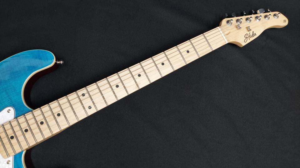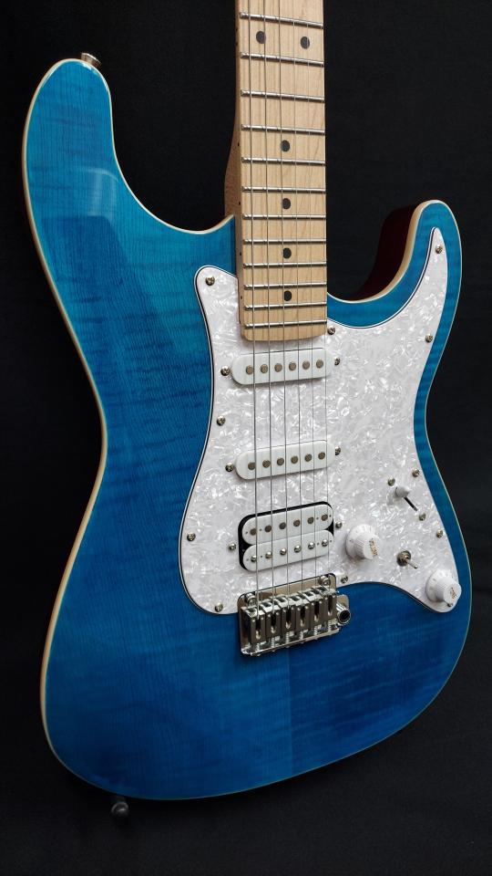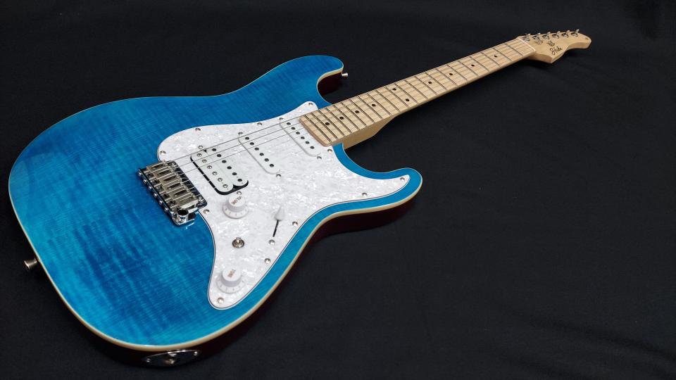 フレイム・メイプルトップを採用した「SST-650」は、ゴージャスなルックスが特長です。発色の良いカラーリングが高級感を引き立て、まるでハイエンドギターを思わせる存在感を放ちます。ピックアップはS-S-Hレイアウトを採用し、クリーンから力強いドライブサウンドまで幅広い音作りに対応。ルックスとサウンドの両面で、プレイヤーを満足させる一本です。