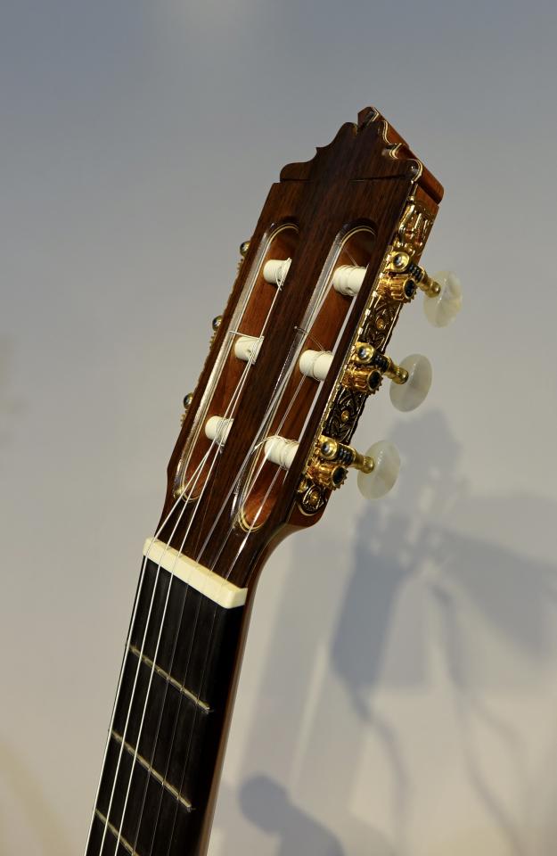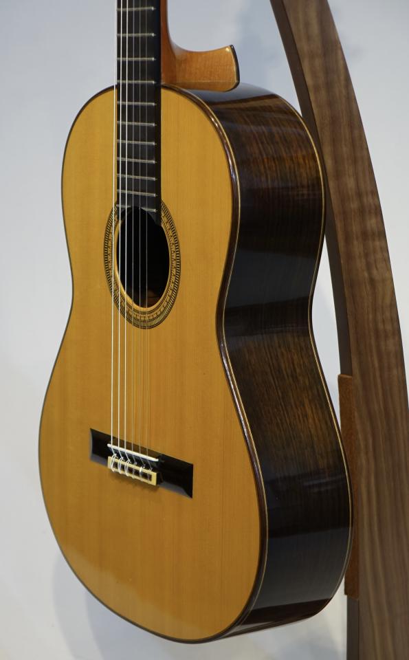 ブックマークする 値下げ通知に登録日本を代表する黒澤澄雄氏の高級モデル「Especial」2003年製の中古品を入荷しました。黒沢氏はスペインでマリアノ・テサーノス、テオドロ・ペレスに師事し、グラナダの名工アントニオ・マリンの工房で塗装技術を学ぶなど、本場スペインの製法を身の上にして伝統に則ったギターを生み出します。海外からの評価も高く、国内でもトップクラスの製作家のひとりと言えます。スペイン的な深い響きで、低音から高音までバランスよく鳴ります。