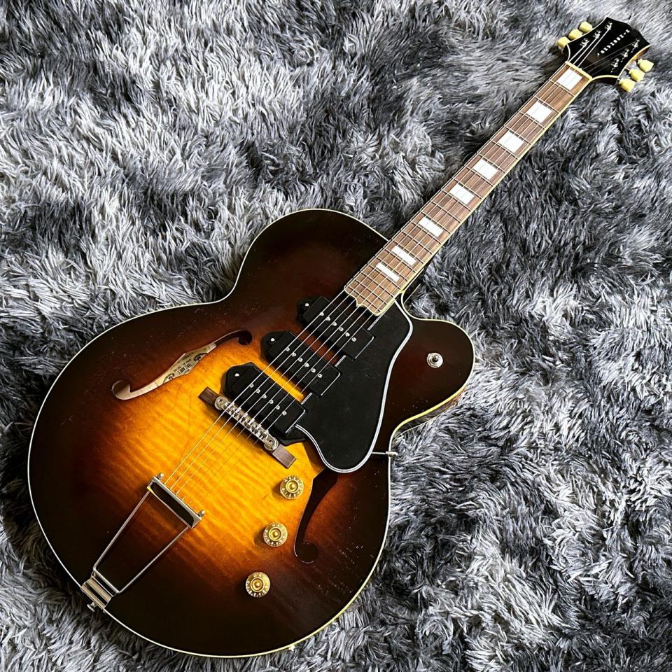 カール・パーキンス、ローウェル・フルソン、ゴリー・カーター等R&R、BLUESミュージシャンが黎明期に使用したP-90 3基搭載のフル・ボディ・フルアコ。そして何と言ってもモダンブルースの父Tボーン・ウォーカーのあのサウンド。B.B.キング、チャック・ベリー、ゲイトマウスブラウン等を魅了したそのプレイ、そしてそのアコースティック感を 持ちつつもキレの有るあのサウンド。そのサウンドを求めるべく企画。ピックアップは、独自にハンドワイヤリング製作し、低音がブーミーに成りすぎないようネック&ミドルピックアップはワイヤーのターン数を抑え、ブリッジピックアップは、やや多めにテンションを緩めにワインドし、キレがありながらもミッド&ローが力強いトーンとなるようにしている。合板が持つナイスなトーンを最大限にメリット化し独自なレイヤーを施してある。コントロールはSTと同じくToggle SWにて3つのP.U.切替、1 Masterl Volume & 2 Tone (Front Tone、Middle&Bridge Tone)仕様。2P.U.、1P.U.モデルと3モデル同時発売。そのフルボディ構造とピックアップとのバランスにより、先述のプレイヤーが残したサウ ンドを容易に出せるモデル群である。