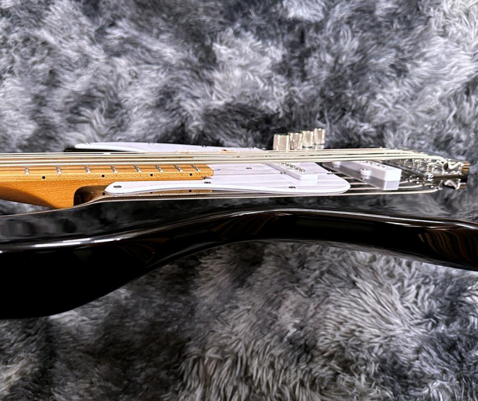 一般的なJBタイプよりややスリムなディンキーシェイプにローステッドメイプルネック仕様。さらに一般的なスケールである34インチより1インチ(約2.5㎝)短い33インチスケールを採用。