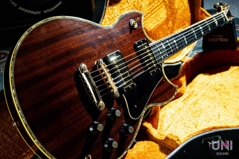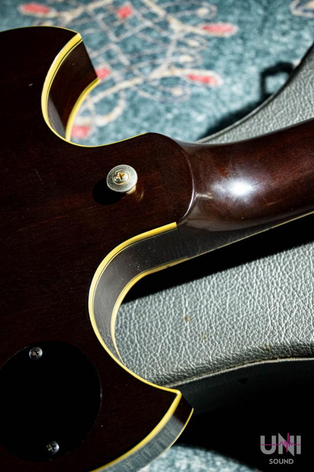 また、SG-175は後のSG-2000誕生にも深く関わる重要なモデルです。Carlos Santanaが1974年の来日時にSG-175を使用し、その後の要望をもとに製作されたのが通称“ブッダSG”。さらにその仕様を踏襲して市販化されたのがSG-2000とされています。ブッダSGやSG-2000がスルーネック構造を採用しているのに対し、本機SG-175はセットネック構造を採用している点も特徴です。