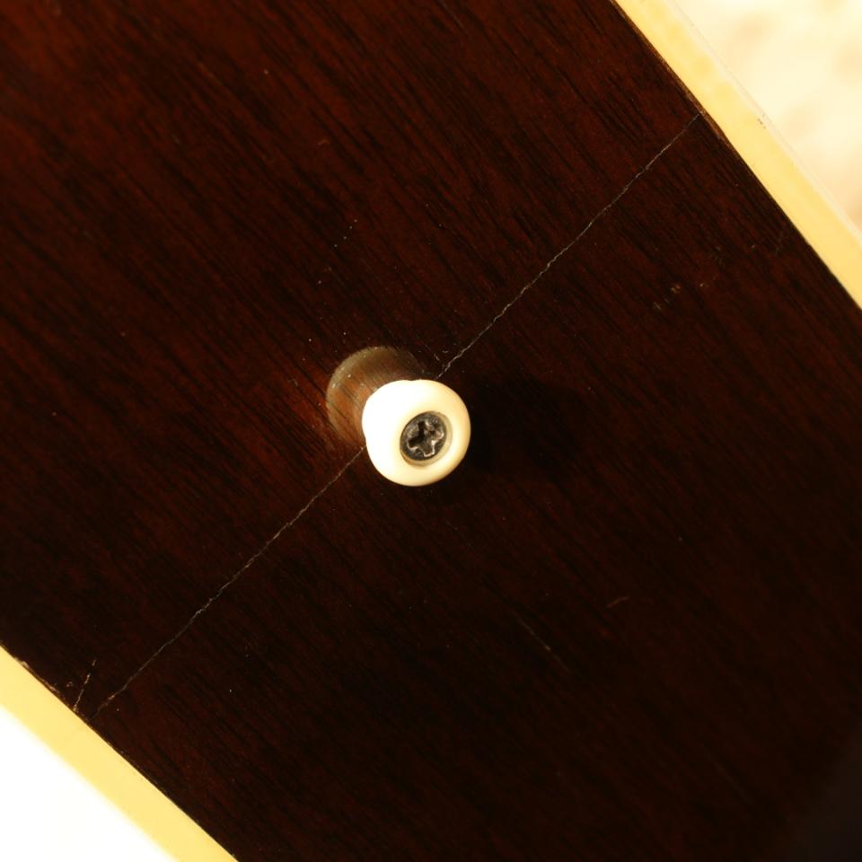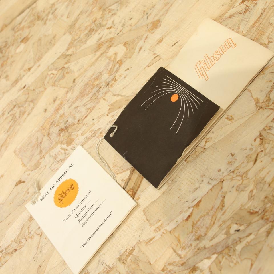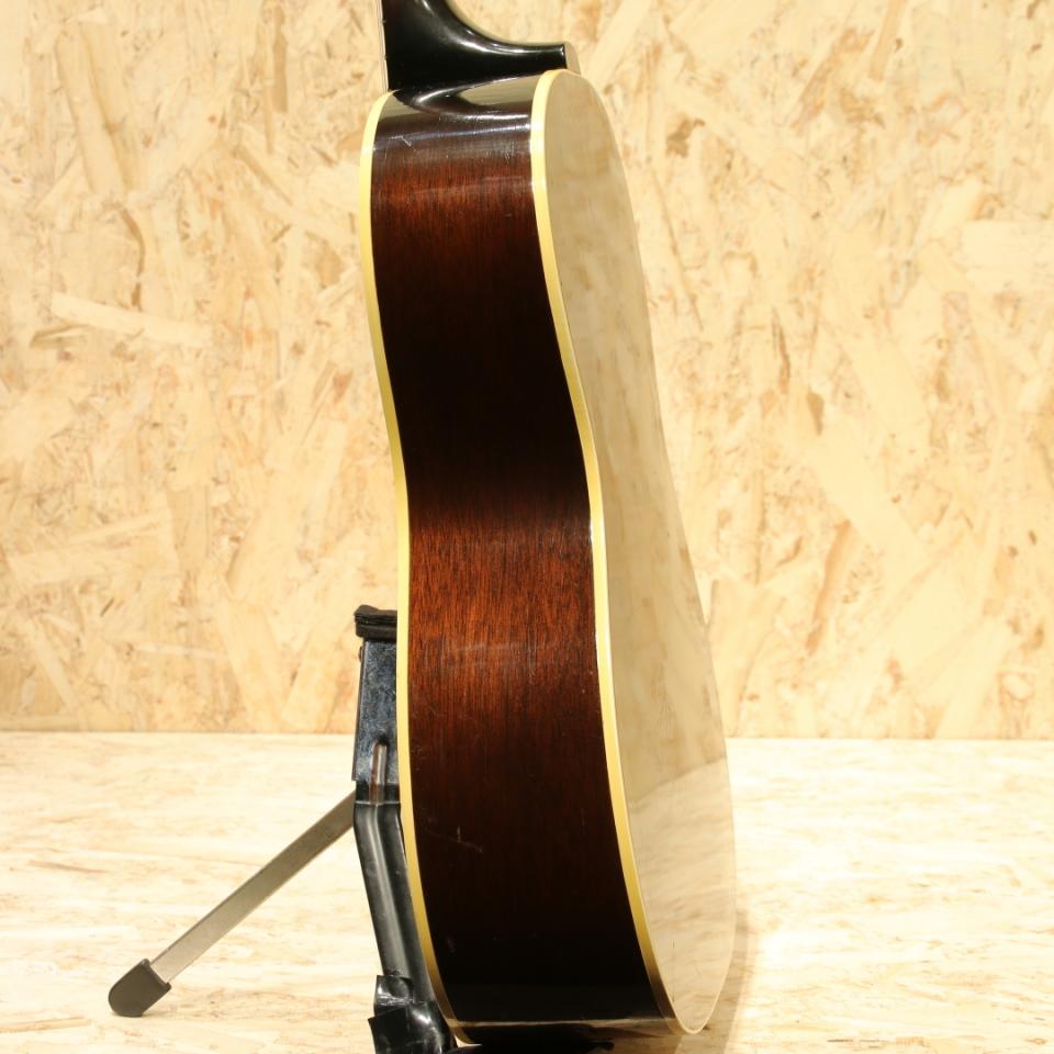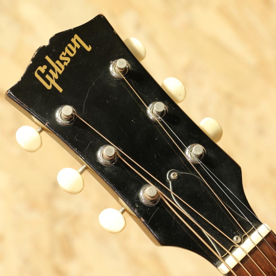 1942年からLGシリーズとして流通していたスモールギブソンの代表的なモデル。1962年にはその名が"B-25"という名前に生まれ変わります。ホットスタンプ付きピックガードの1968年製のB-25。ブラウンが深い珍しいダークブラウンサンバーストのお品です。スプルーストップ、マホガニーサイド&バック、マホガニーネック、ハカランダ指板&ブリッジ、ハカランダADJアジャスタブルサドル、オリジナルクルーソン3連ダブルラインチューナー、厚手のオリジナルベッコウ柄ホットスタンプ入りラージガード、ノンスキャロップド・エックスブレイシング、タイトでカラリとした趣きのある音色が楽しめるビンテージでこのギターにしか出せない味があります。伴奏からラグやブルースまで小気味よく聴かせることができるモデルです。小さな小傷がトップにはちらほら見られ、バックにも小さなバックル傷などがまばらに見られますが、全体的なフィニッシュのコンディションは驚くほど素晴らしいコンディションをキープ。塗膜のフェード感は殆どなく近年と見紛うような光沢感があります。勿論木部はノンクラックでピックガードのマークもしっかりと残っており素晴らしい美品です。ペグ、ミカルタナット、フレット、ADJサドルパーツ、ブリッジピン、エンドピンに至る各主要パーツもすべてオリジナルで揃っています。ネックも良好な状態をキープ、弾きやすくプレイコンディションも良好です。汎用ハードケース付属。当時のGuaranteeタグまでついた貴重な一品です。