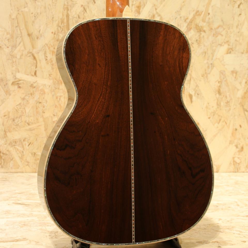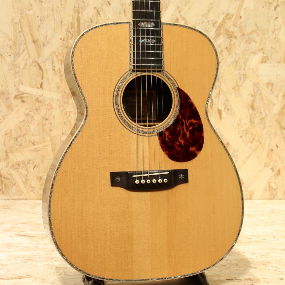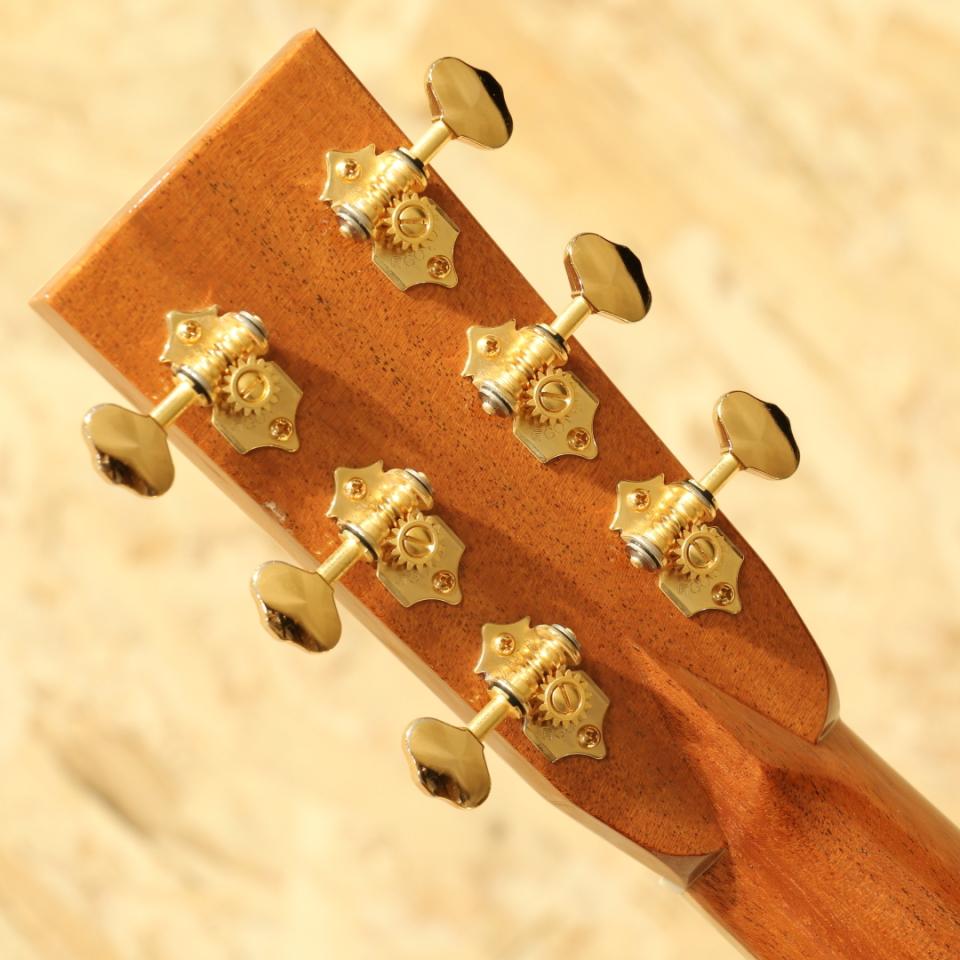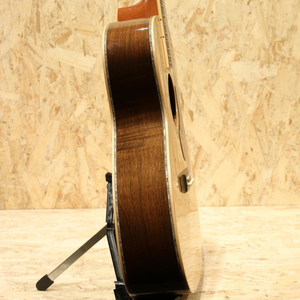 1962年より福岡久留米にてギター製造を行う老舗純国産ギターブランド、アストリアスギター。現在もベテランを中心とした約15名のスタッフで運営しています。本器はECシリーズの最高級モデル”E.C Emperor Jacaranda”。2017年製USED品です。ジャーマンスプルーストップ、ハカランダサイド&バック、マホガニーネック、エボニー指板&ブリッジ、ゴトー製オープンゴールドペグ、ハカランダ天神板、アバロントーチインレイ・ヘキサゴン指板インレイ、アバロンバインディング&ロゼッタ、トーティスピックガード、ノンスキャロップド・エックスブレーシング、オールラッカー仕上げ、後付けにてL.R Baggs Hi-Fi搭載。厳選された最高級材やヘッドの先からボディエンドまで贅沢に施されたメキシコ貝インレイ。経験豊富なアストリアスクラフトマンが時間と手間を惜しまず製作し、エンペラーという名がふさわしいまでの一つの究極形を体現したギターです。均整の取れた杢目のジャーマンスプルース、美しい杢目のハカランダ、そして青々と輝くアバロンのインレイの数々。外観の絢爛さはもちろん、サウンドにも唸るものがあります。重厚な低音域にスッキリと抜けていく上品な高音域。小ぶりがゆえに、音の立ち上がりが早くタッチレスポンスに優れた音色。45mmナット幅、645mmのロングスケール仕様で音の分離も明瞭でフィンガースタイルに最適なギターです。アストリアスらしい繊細で華麗なトーン、弦の輪郭や解像度の高さから細やかなフレーズやニュアンスの表現にも優れています。力強いストロークにもしっかりと対応、サイズ感以上のボリューム、明瞭な音像でぼやけることもなく安定したサウンドをストロークでも奏でます。ピックアップは後付けにてL.R.Baggs HiFiを搭載。2つのセンサーをブリッジプレートに貼り付けるタイプのHiFiはコンタクトピックアップに分類されますが、従来のコンタクトピックアップのサウンドとは異なり、専用の高性能プリアンプとの組み合せで、L.R.Baggsでも屈指のナチュラル・サウンド。バランス、クリア、ダイナミクスを備え、フィードバック耐性も非常に高いのが特長です。全体を通して光にかざせば視認できる程度のキズがある程度と非常に綺麗なコンディションが保たれている本器。プレイ・ネックコンディション共に良好。年間限られた数のみの生産の為、中古市場でも出回りの少ない機種。純国産のハイグレードOMスタイル、お手持ちのギターのグレードアップをご検討中の方は是非お試しください。ヘッド裏2弦と3弦のペグの間に米粒程の凹みキズがあるのが惜しい点。その他は光にかざせば視認できる程度の線キズがある程度と綺麗なコンディションが保たれている本器。ネック周りやフレットのコンディションも良好、演奏性を高く保たれた1本です。ピックアップ搭載でより実戦仕様へと仕上がっている本器。エンペラーは受注生産、特段ハカランダ仕様モデルは玉数が少なく新品をご検討だった方にはとてもお買い得にお求め頂けるお買い得品!お早めにどうぞ。オリジナルハードケース付属致します。