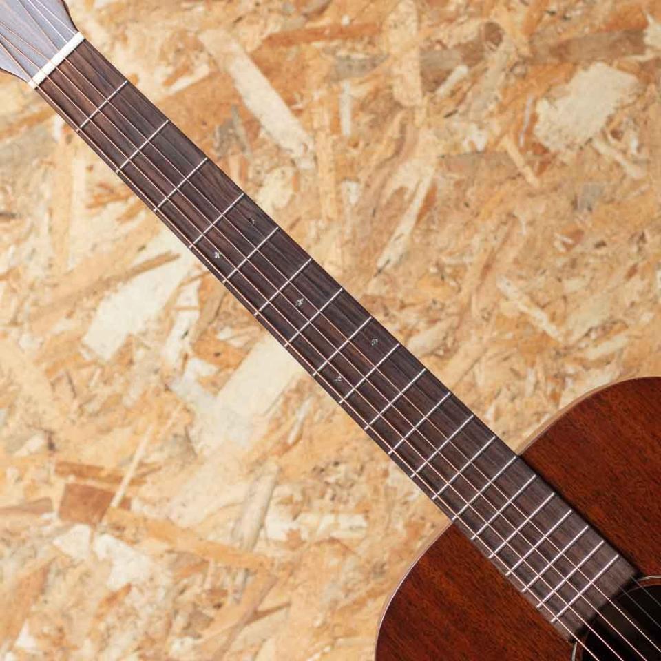 1920年代当時のオリジナルOO-15を彷彿とさせ、ブルース好きのギタリストから注目を集めている本格派のモデルOO-15M。オール・マホガニー材を用いた焦げ茶色のシックなルックスとまろやかなサウンドが人気です。以前のOO-15はサペリもしくはマホガニー材のいづれかの仕様でしたが、本器は完全にマホガニー材を使用した機種でネックもマホガニー、指板&ブリッジはローズウッドです。通常よく使われるスプルース材TOPに比べ、全体的に柔らかい音が特徴で、OOサイズと艶消しフィニッシュならではのレスポンスの良い響きに上手くマッチングしており、渋いブルース系から弾き語りまで幅広く使える1本ではないでしょうか。小振りなギターをお探しの方にお勧め1本です。オリジナルギグバッグ付属