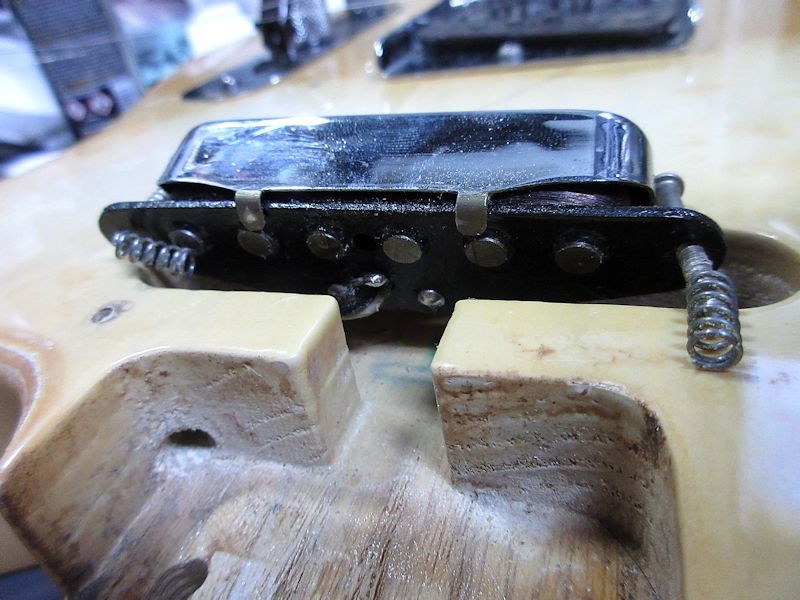 程よく色やけし、薄く黄色味をまとったブロンドカラーがクールな1975年製テレキャスターです。ところどころ塗装がチップしている箇所はあるものの、適度に肉付きの良いネックグリップで、フレット(6105)・ナット交換も相まってとても弾きやすい個体です。アッセンブリはハイパスコンデンサも含めてフルオリジナル。コード弾きでは前に抜けてくる存在感があり、単音弾きでは太さがありつつ倍音成分豊かな色気たっぷりのトーン、この時期ならではのヴィンテージテリーサウンドをお楽しみ頂けます。ウェイトは3.74kgと時期柄比較的軽量な部類で、これからまだまだ弾き込んでいただけるポテンシャルの高い1本!サウンド的にも使える1本でオススメの良個体!やや後年のFENDER製ブラックトーレックスケース付属致します。