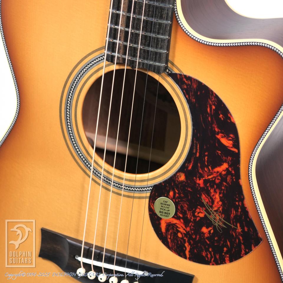 ボディ幅は000と00サイズの中間でありながら、ディープボディ仕様となっている為、抱え易い小柄でありながらも豊かなベース音を生み出します。ブルージーなルックスから放たれる、ブラックウッドとスプルースの煌びやかな高音は気持ち良いの一言。