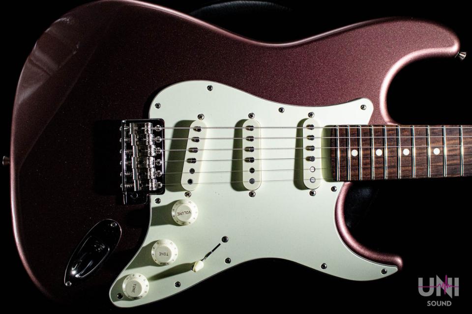 「AST/R BGM」はローズウッド指板、 バーガンディミストカラーを採用したSTタイプ。