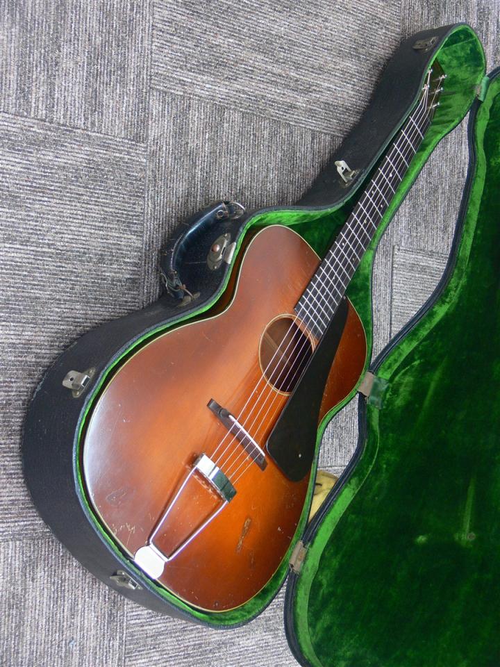 戦前の当時は、fホールモデルが人気だった事もあり、すぐにラウンドホールからfホールのピックギターになります。