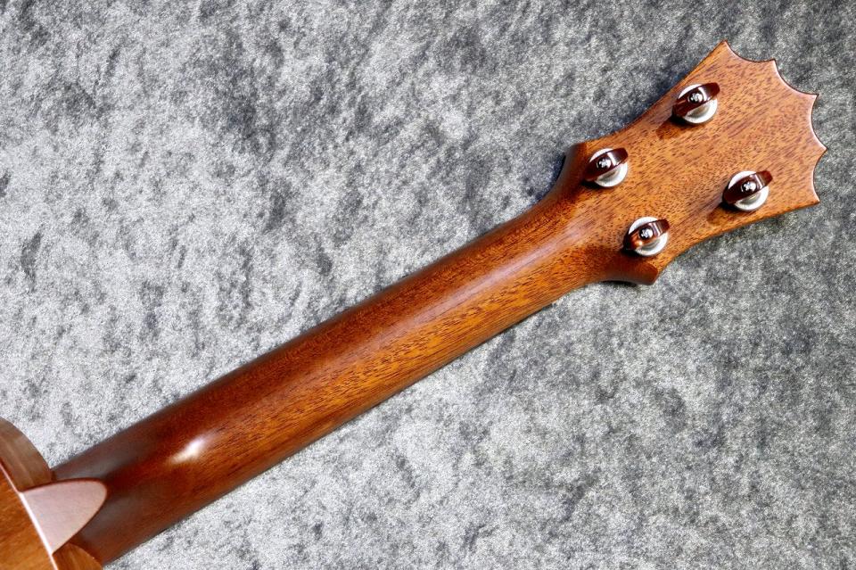 魅力的な杢目を持つハワイアンコアボディ、ネックはマホガニーで芯がありつつも甘い色気のあるサウンドを持ちます。指板とブリッジはエボニー、ナットとサドルはタスクを採用。より輪郭のあるサウンドを作り出します。