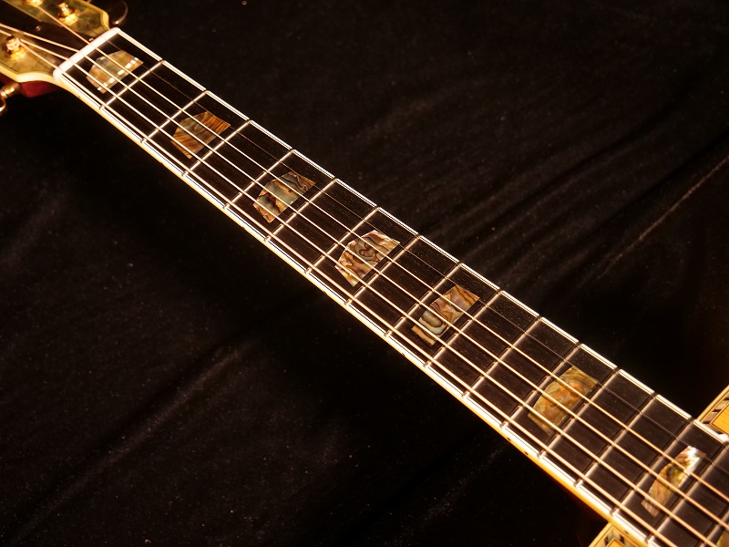 フレットは過去にリフレットが施されており現在は80%程残っていますので当面リフレットは不要です。指板の減りもございません。ネックは真っ直ぐでハイ起きも無く、お腹の過度の膨らみやブリッジの剥がれもありません。弦高は12F6弦で約2.5mmと標準の高さをKEEP、サドル残も十分あり、弾きやすいセッティングでトラスロッドも効きネックを含めプレイヤビリティも大変良好な個体です。