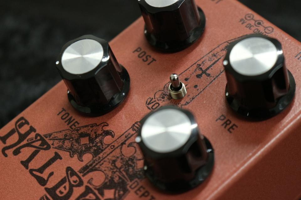 ミディアムゲインのデバイスでありながら、ハイゲインペダルのような倍音、スムーズなテクスチャ、グラインド感を兼ね備えるユニークな質感が特徴的です。