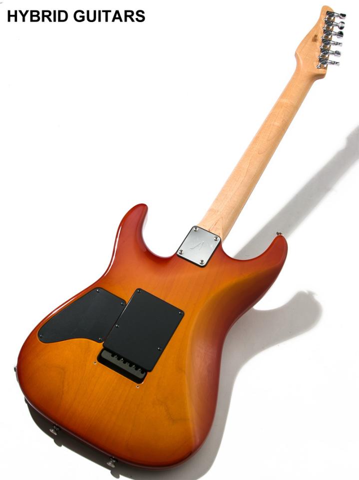 本機はボディトップにFlame Maple、ボディバックにAlder、指板には銘木Jacarandaに近い音響特性と木目を持つMadagascar Rosewood、ネックにHard Rock Mapleを使用し、12-14inchのコンパウンドラディアス指板、フレットには幅が広く程よい高さのHeavyを採用しています。