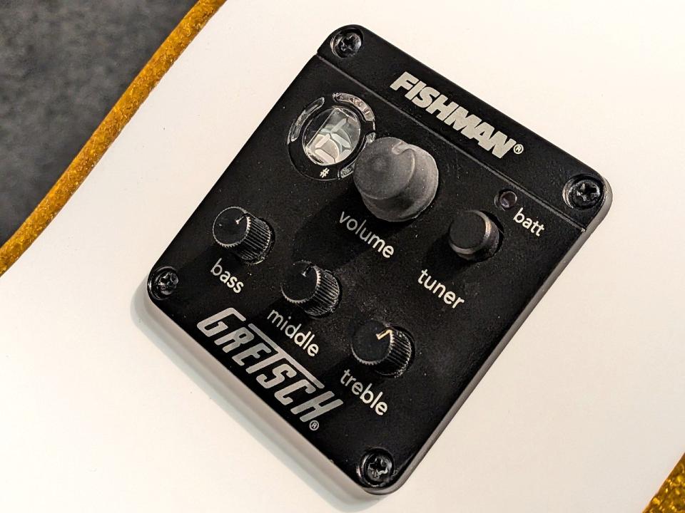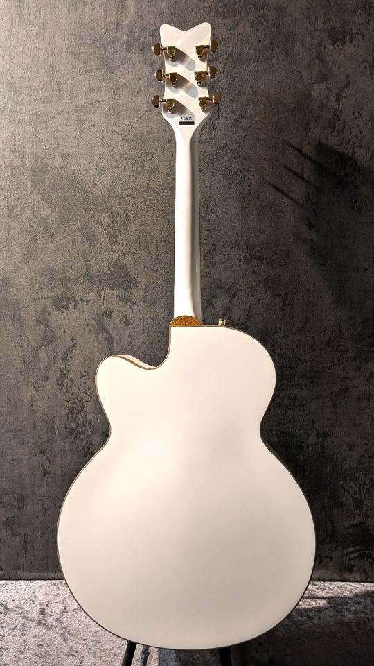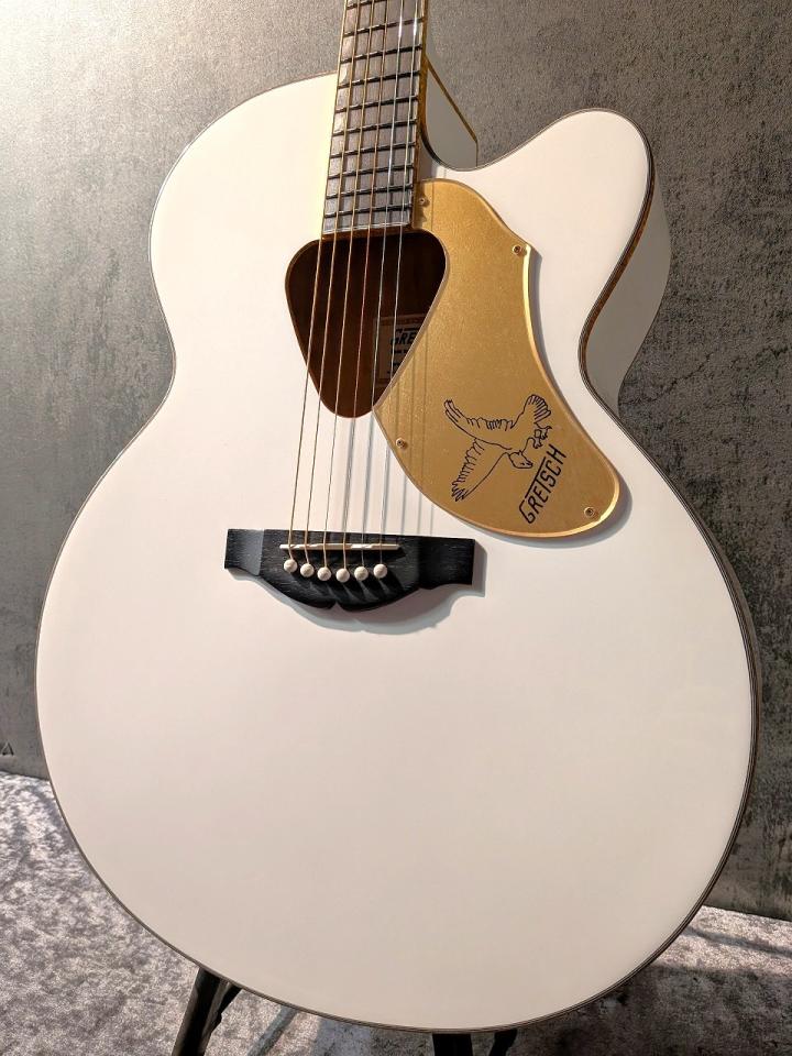 このモデルの最大の特徴は、Gretschの魂である「White Falcon」のデザイン・エッセンスが、アコースティックの枠組みの中に凝縮されている点です。
