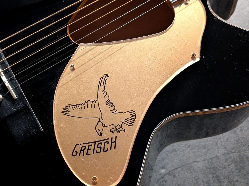 観客の視線を釘付けにする強烈な存在感があります。伝統的な「三角形のサウンドホール」も、Gretschファンには堪らないポイントです。
