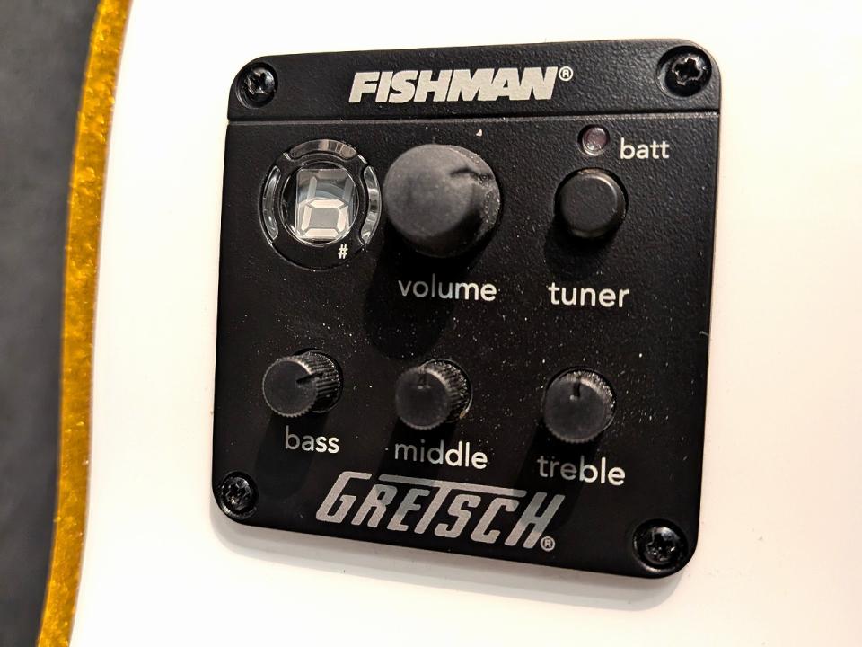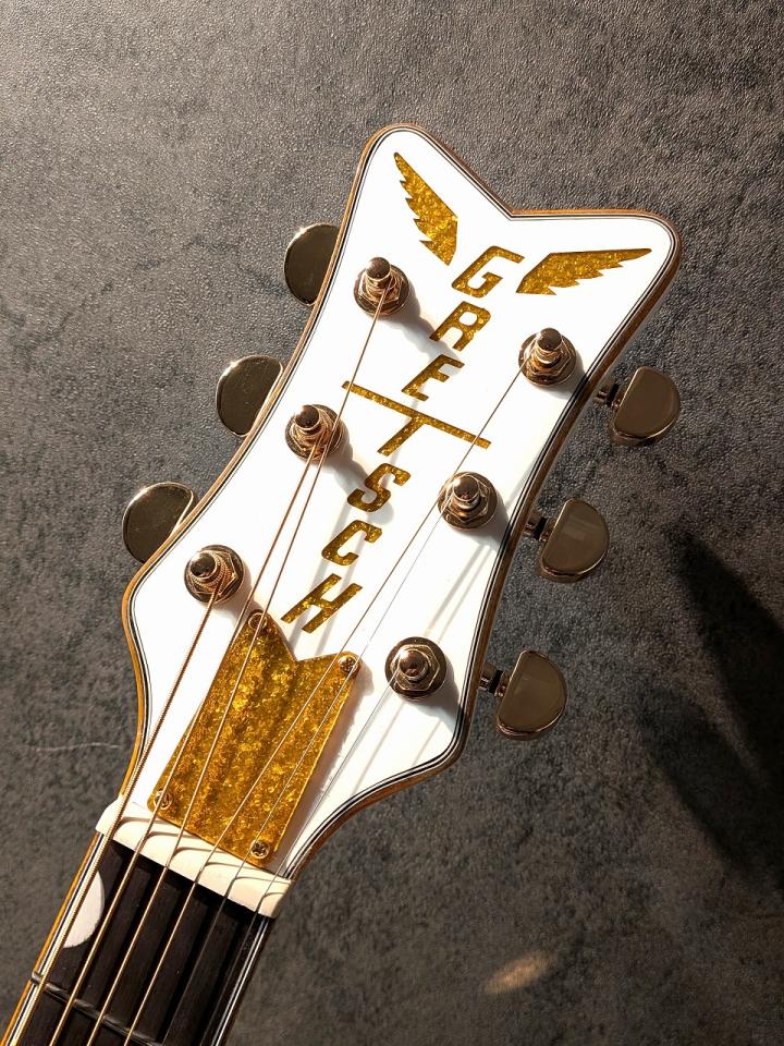伝統的なランチャー・スタイルの三角形のサウンドホールや、ペンギンのイラストが施されたピックガード、そしてVシェイプのヘッドストックなど、Gretschファン垂涎のディテールがこれでもかと詰め込まれています。