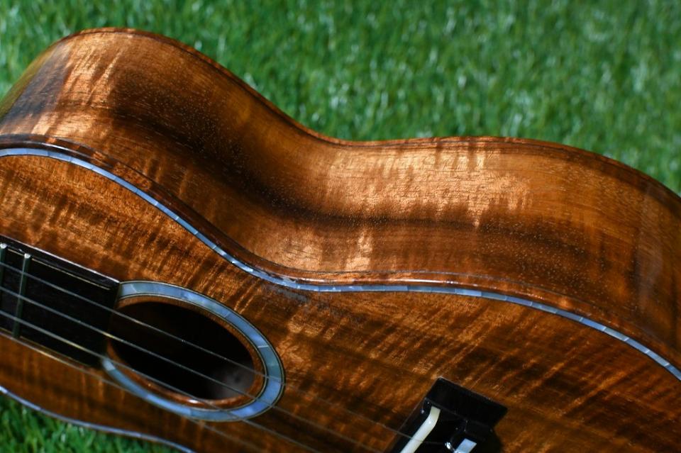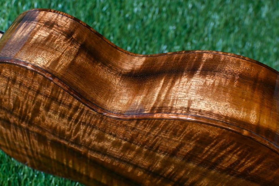 ボディの他ボディバインディングにも綺麗なカーリーハワイアンコアが使われており、