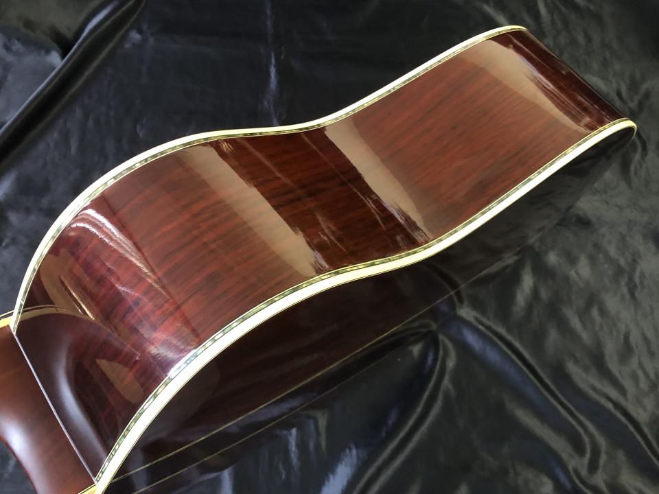 ボディトップに単板スプルース、バックには合板のローズウッドが採用されています。