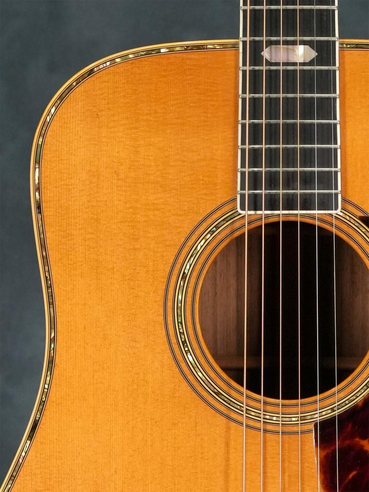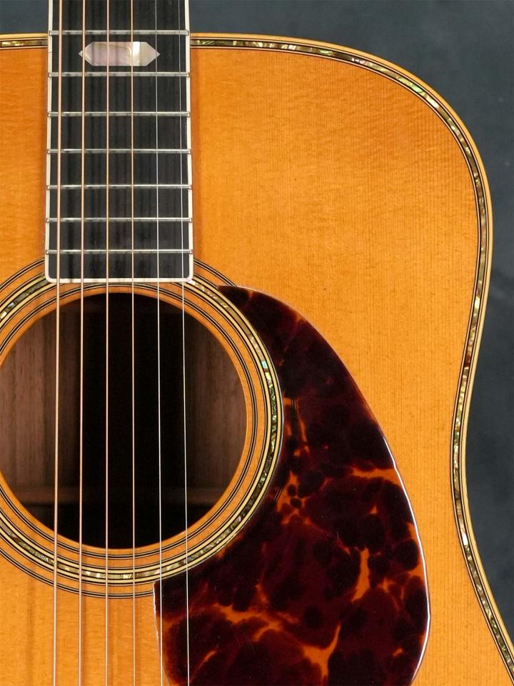 トップリフィニッシュや各部の改造歴はあるものの、ノンスキャロップブレーシング&スクエアロッド期ならではの低域に芯が有り無骨で大きな鳴りが心地よく、D-41ならではの煌びやかな装飾かつしっかり使えるプレイヤー向けで鳴りの良い70s Martinをお探しの方にオススメの一本です。