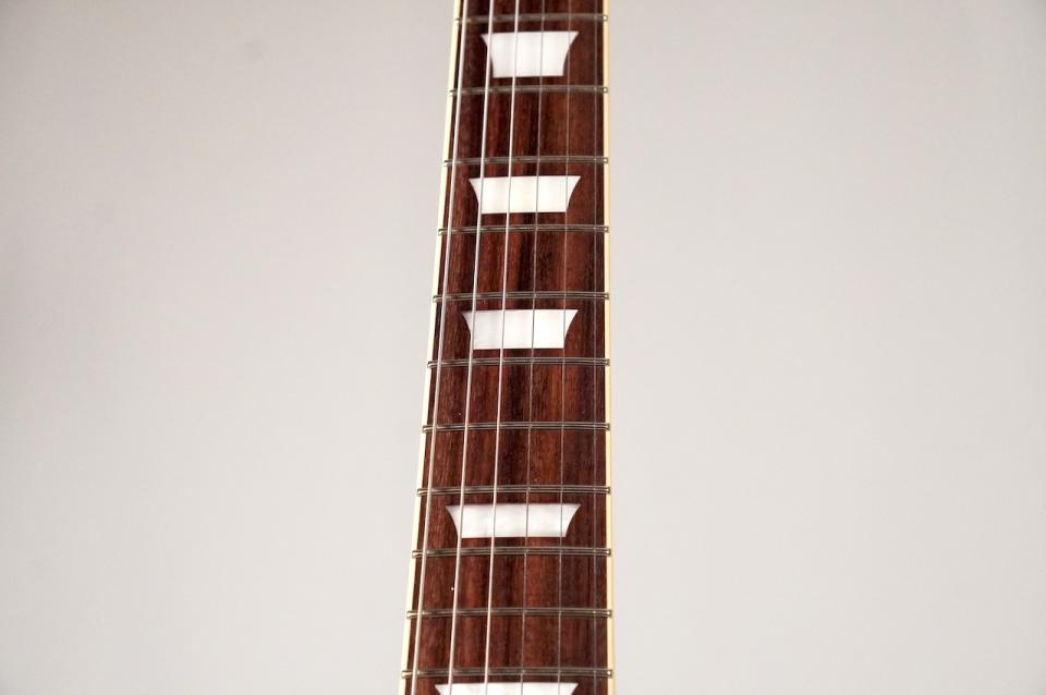 美しい杢目が映えるルックスに仕上がっており、クラシカルなシングルカットスタイルに華やかさを加えています。