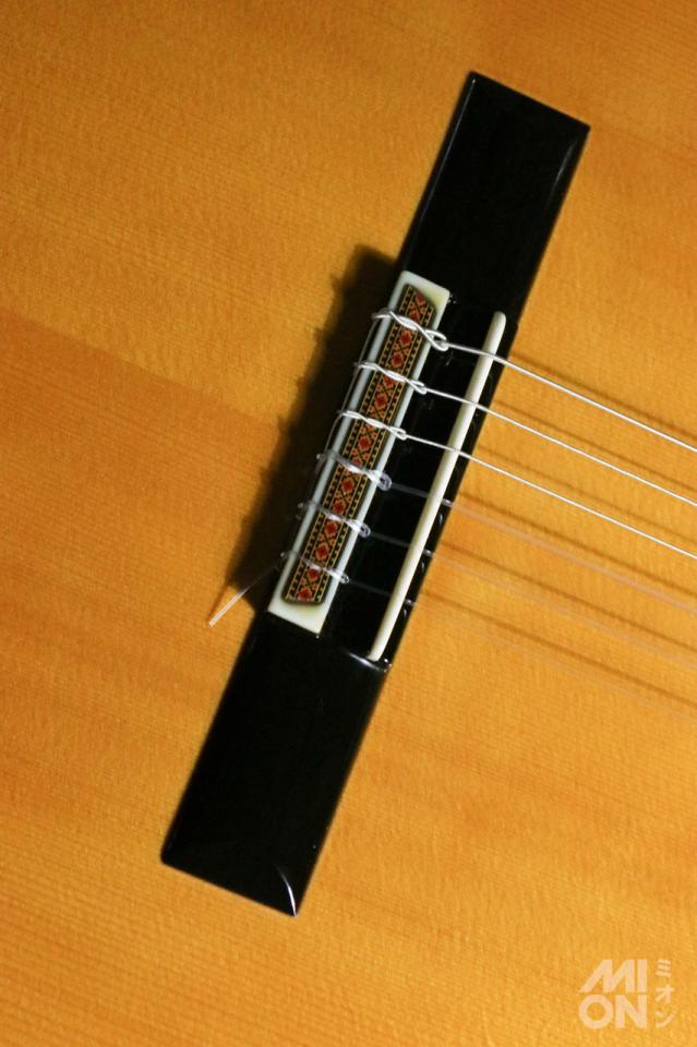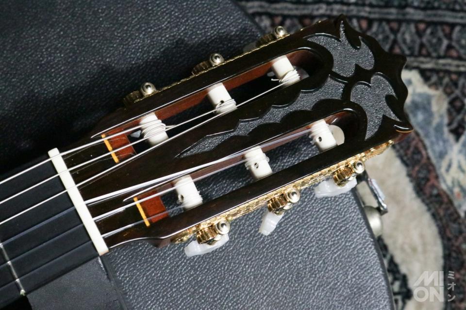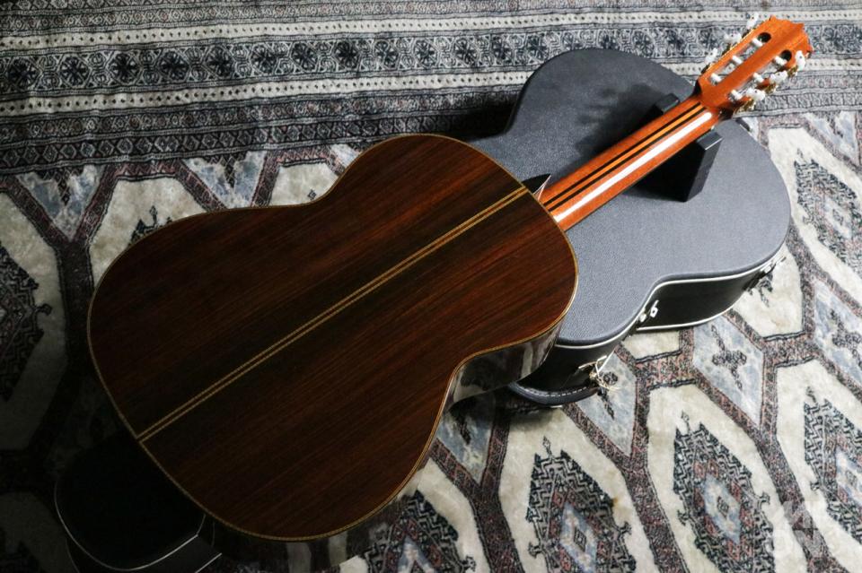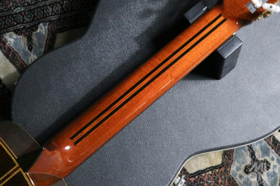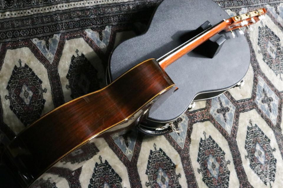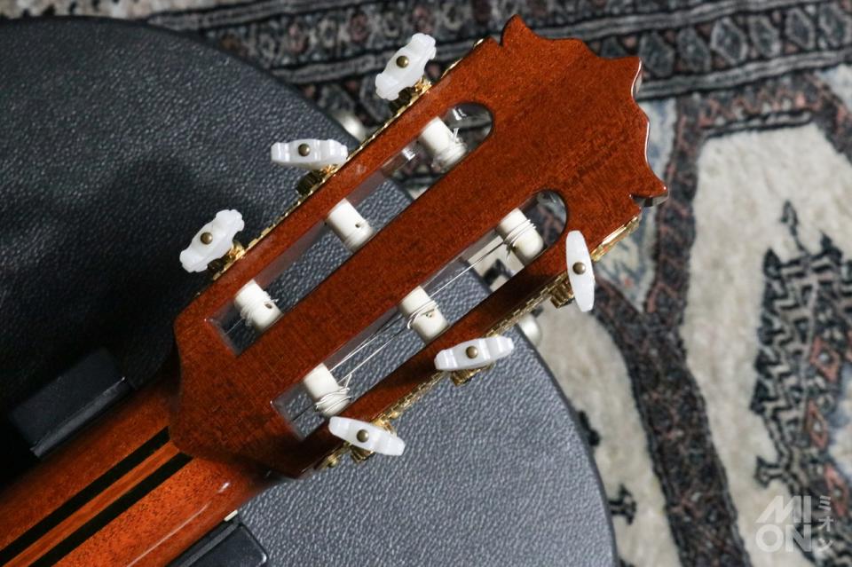 「C-20」は、同氏が制作する定番モデルの一つで、19フレット、スケールは650mmとなっています。こちらはスプルースをトップに、ローズウッドをサイド&バックに、エボニーを指板に使用していると思われます。