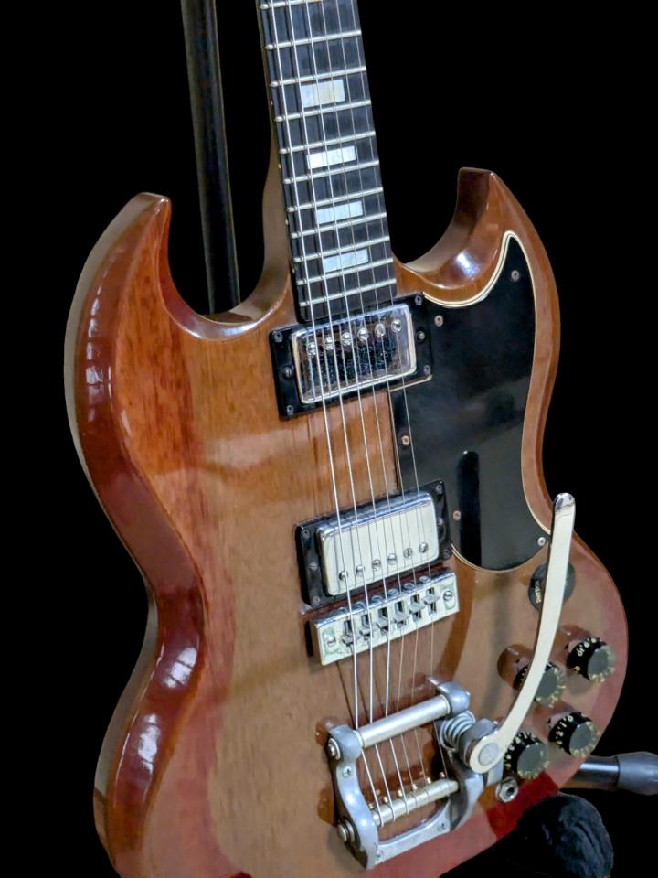 Gibson SG Bigsbyが標準装備された珍しい個体で塗装の退行が抜群の雰囲気です。