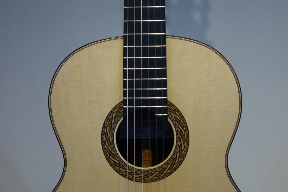 河村和行 KK80の640mmを入荷しました。音に遠達生があり、派手さのない、どっしりと重く、芯のある正統派な音色です。これからもっと、鳴りが良くなっていくだろうと予感させる楽器です。裏・横にはハカランダを使用。裏板は見た目にも非常に美しいです。このご時世、ハカランダを使用した楽器で定価80万円は、信じられないほどお値打ちです。