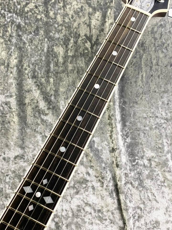 MFG-AC-24はウェストのくびれが大きいシングル・カッタウェイのボディー・スタイルで、ボディーとネックに厳選されたアフリカン・マホガニー、フィンガーボードはエボニーを使用しています。