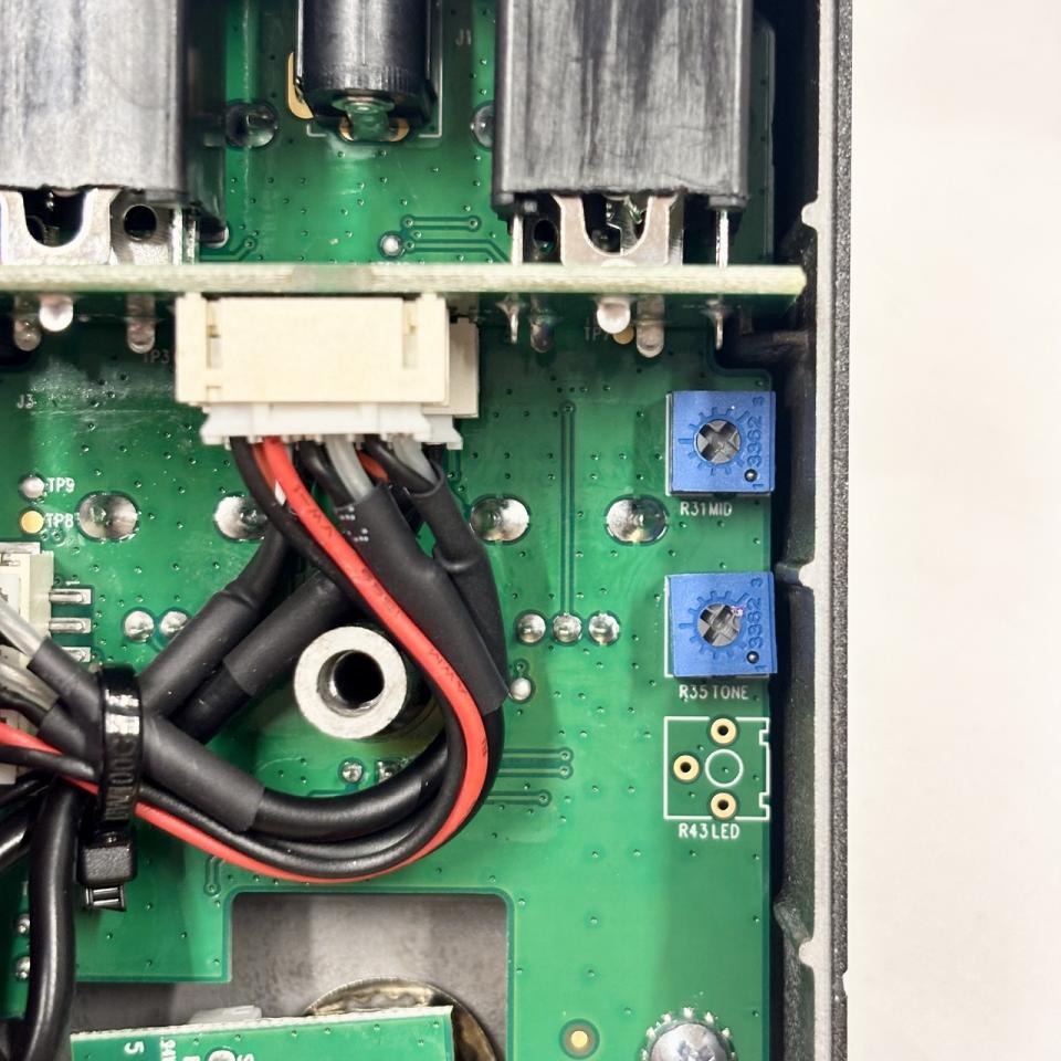 また、裏蓋を開けるとMIDDLEとTONEの内部トリマーが搭載されており、さらに細かいサウンドの調整が可能です。