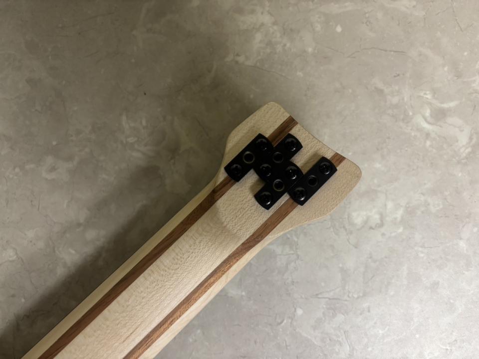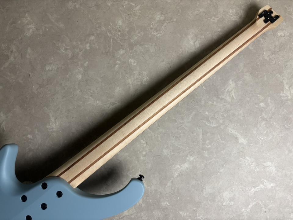 メープル材とジャトバ材を組み合わせた5pcs構造のネックは、強度、安定性に優れています。