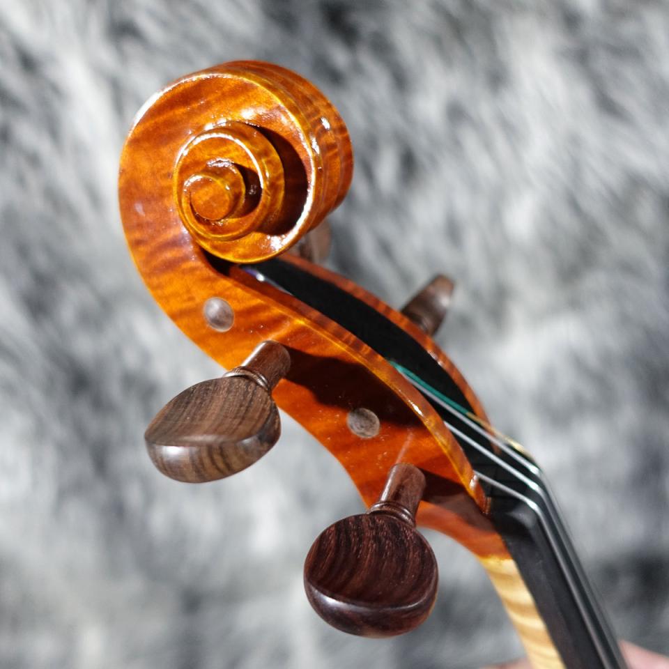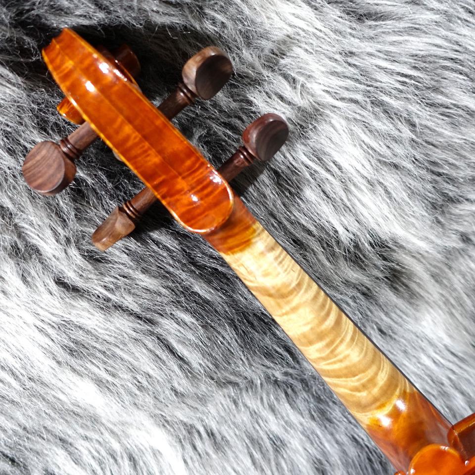 ボディにはヨーロッパ産のスプルース材とメイプル材を使用し、裏板の美しい杢目は葉加瀬太郎氏が使用するオールドバイオリンをイメージ。