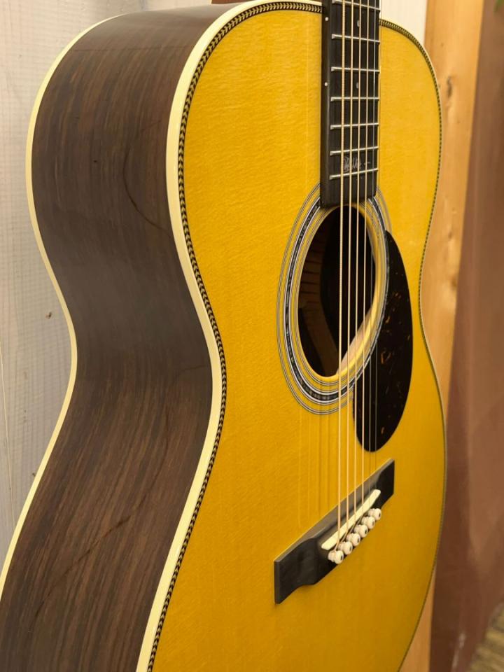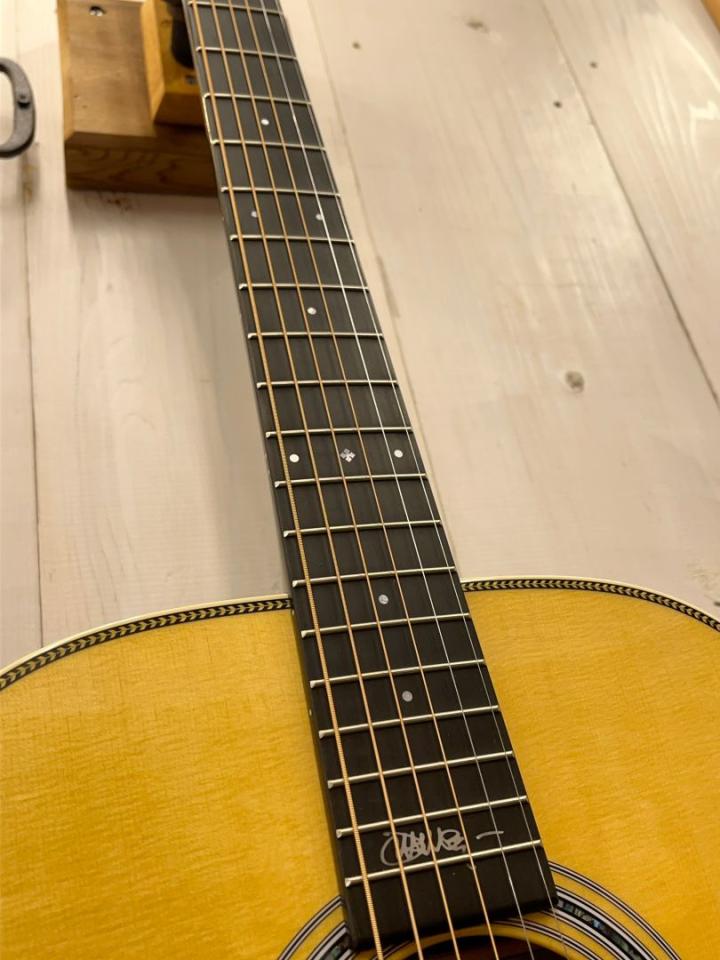 OM-28をベースにトップにはイングルマンスプルース、ナット幅は42.9mm、Low Profileネックの現行モデルでは数少ない細めのネックシェイプを採用、ボディのヘリンボーントリムにアヴァロンロゼッタの組み合わせがさりげなくお洒落な、ジョン・メイヤーのこだわりが詰まったモデルです。