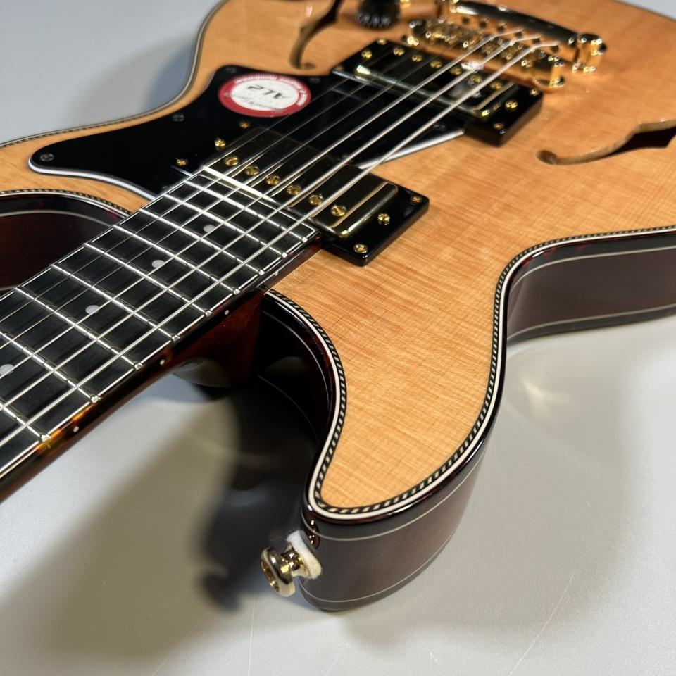軽量で取り回しの良い小ぶりなチャンバード・セミホロウボディ、反応の良いアタックを生み出すスプルーストップ、ハーフヘリンボーンのパーフリングやスモールドットポジションマークなどの控え目ながらもトラッドな装飾など、これまでの仕様とデザインのベースとなるポイントを踏襲しています。